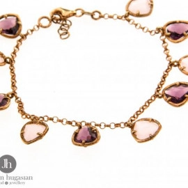 Гривна от "Jacklin " в розово сребро с розов кварц и лилав аметист