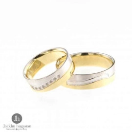 Венчални халки от "Jacklin " в жълто и бяло злато, мат и гланц с циркони