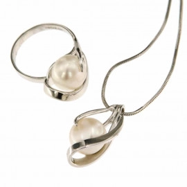 Пръстен от "Jacklin " в сребро с цирконии и култивирана бяла перла