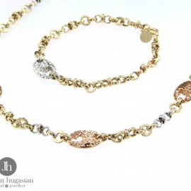 Гривна от "Jacklin " в жълто, бяло и розово злато мат и гланц