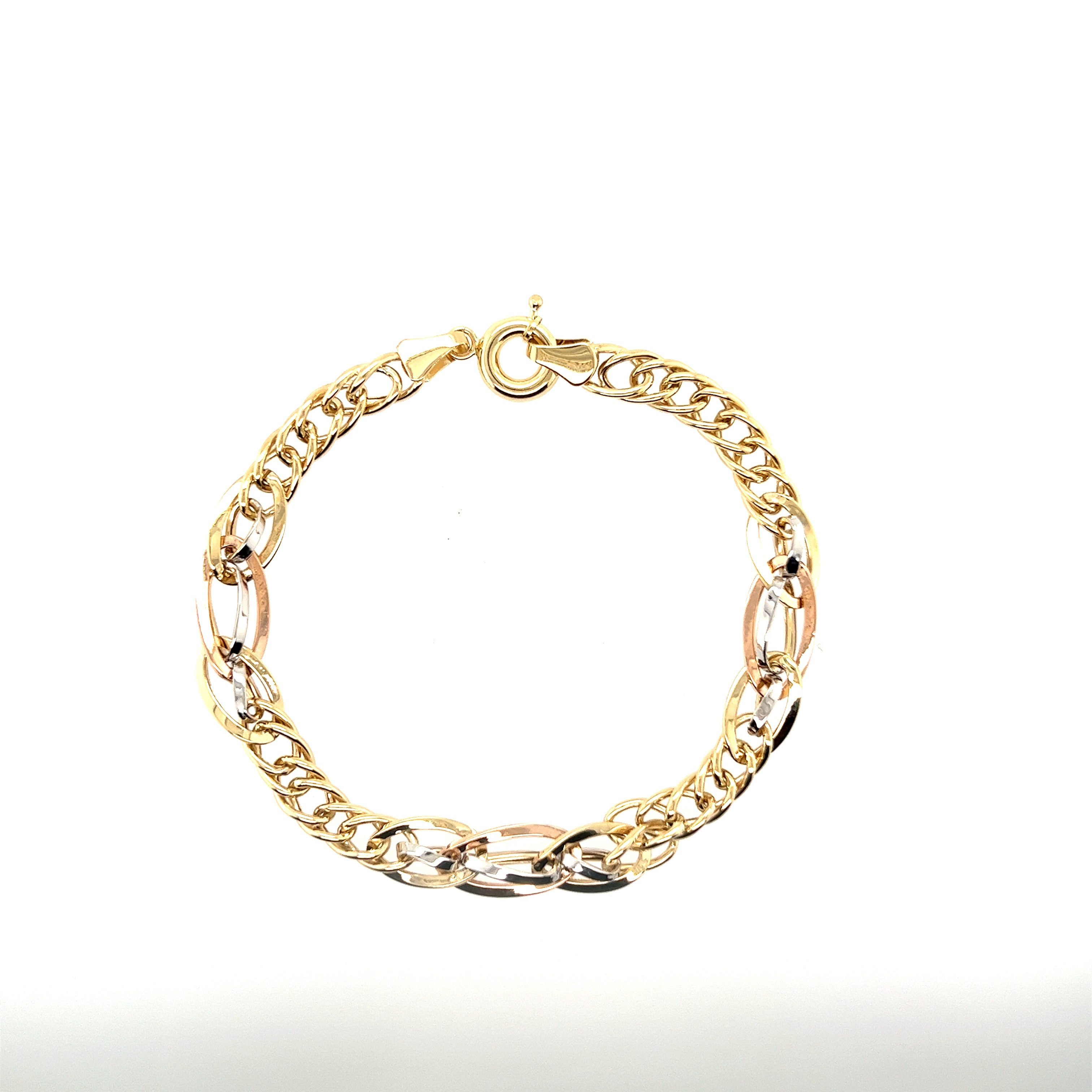 Гривна от “Jacklin hugasian” в жълто, бяло и розово злато гланц.