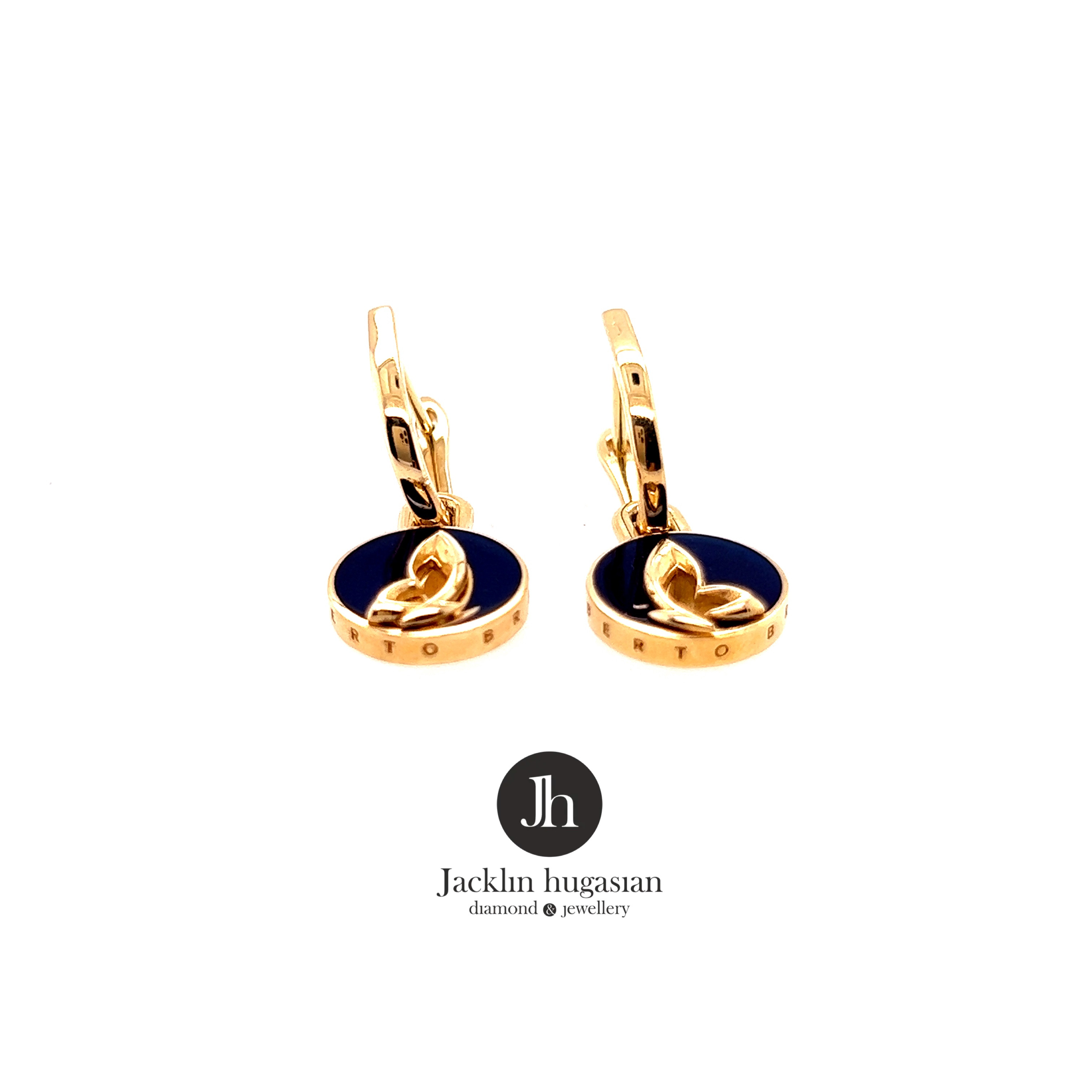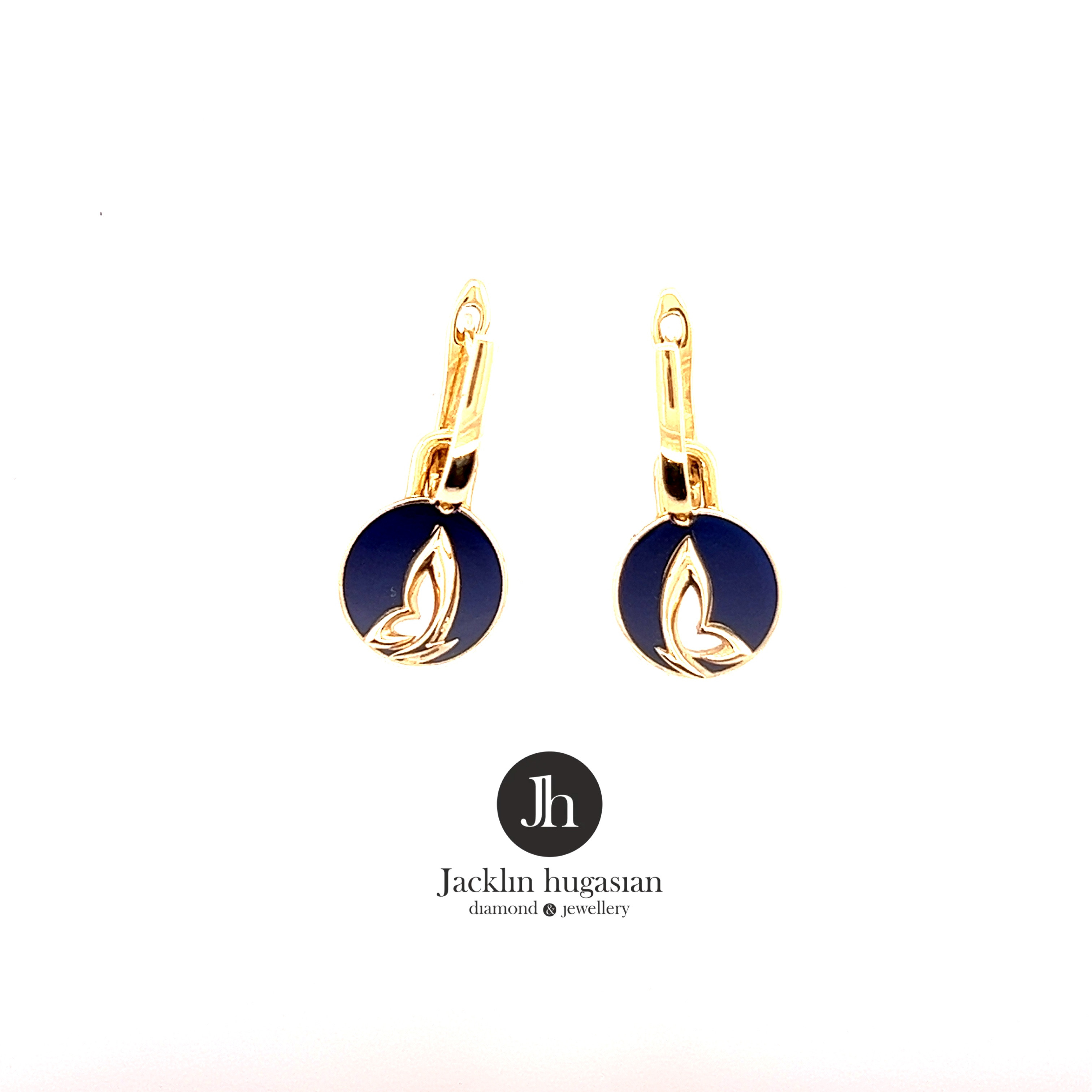 Обеци от “Jacklin hugasian” в жълто злато с цветен емайл.