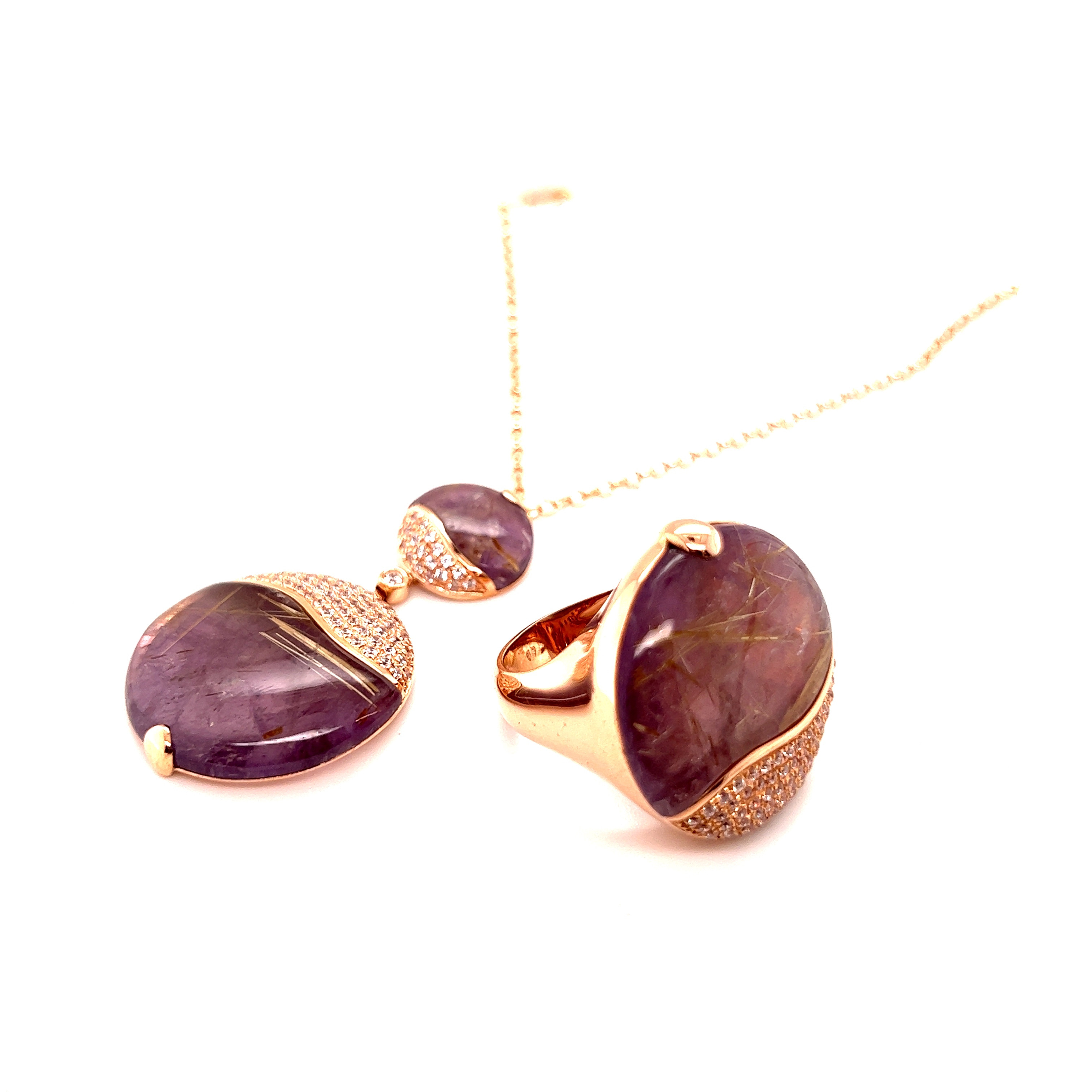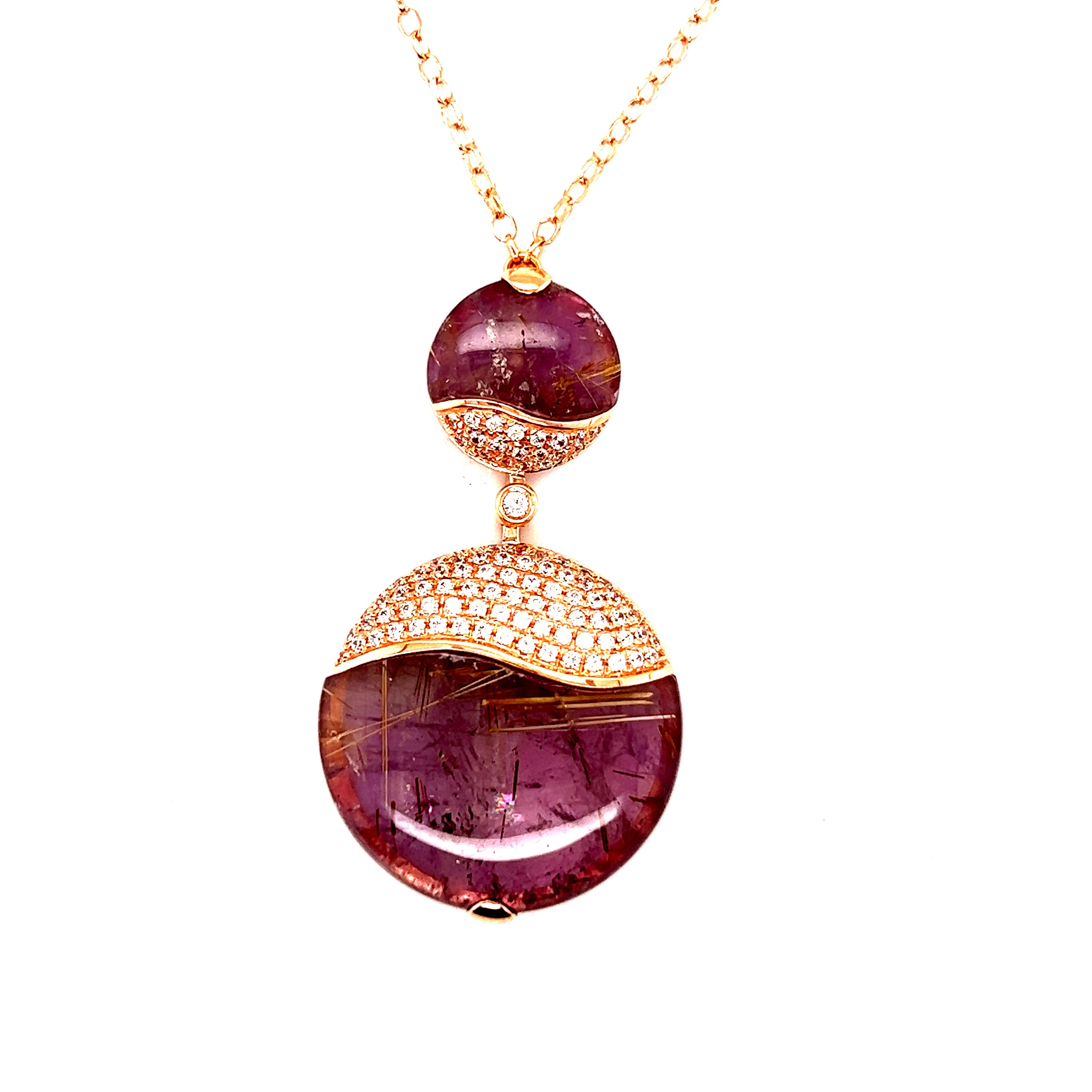 Колие от “Jacklin hugasian” в розово злато с камък "Косите на Венера" и циркони.