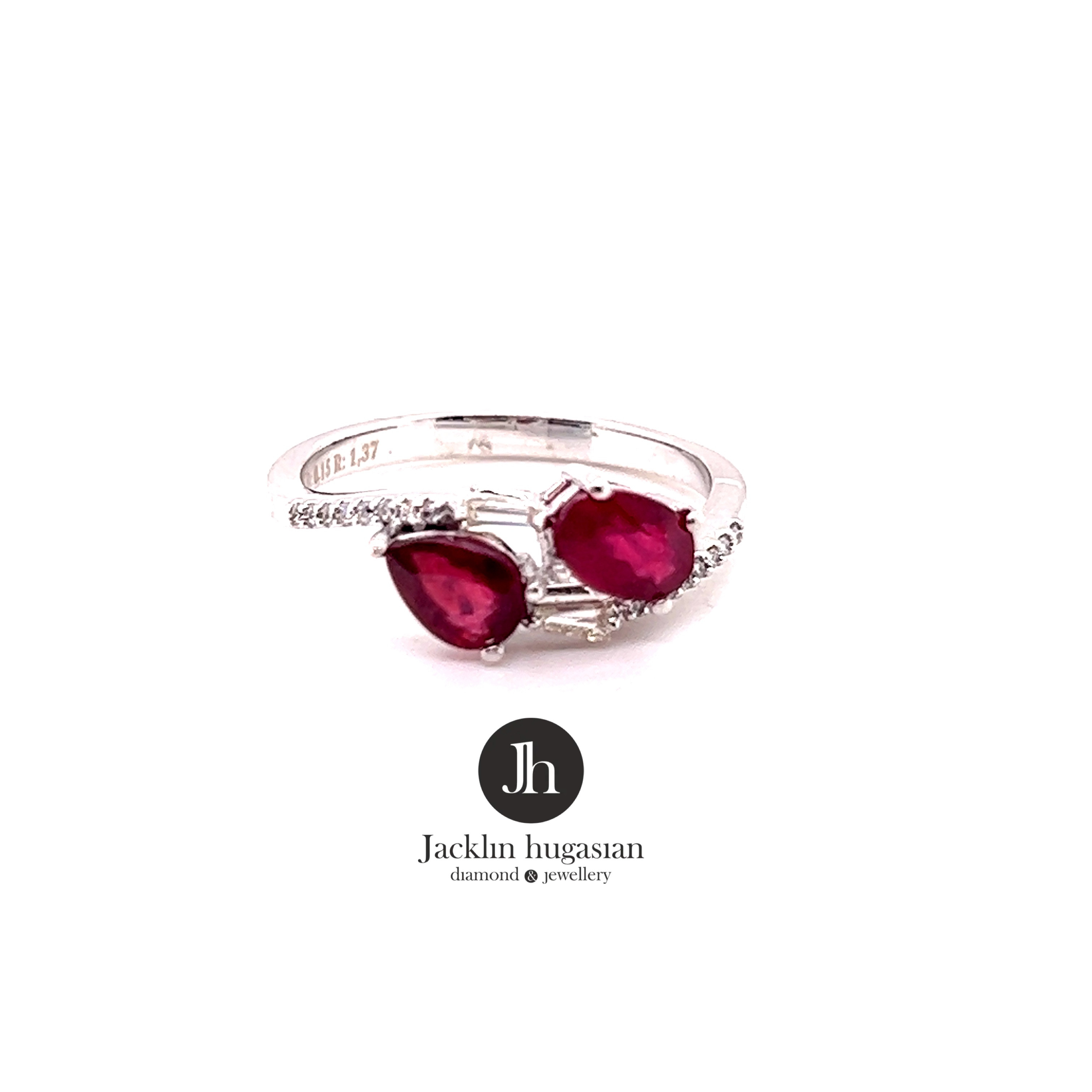Колие от "Jacklin hugasian" в бяло злато с диамант и рубин.