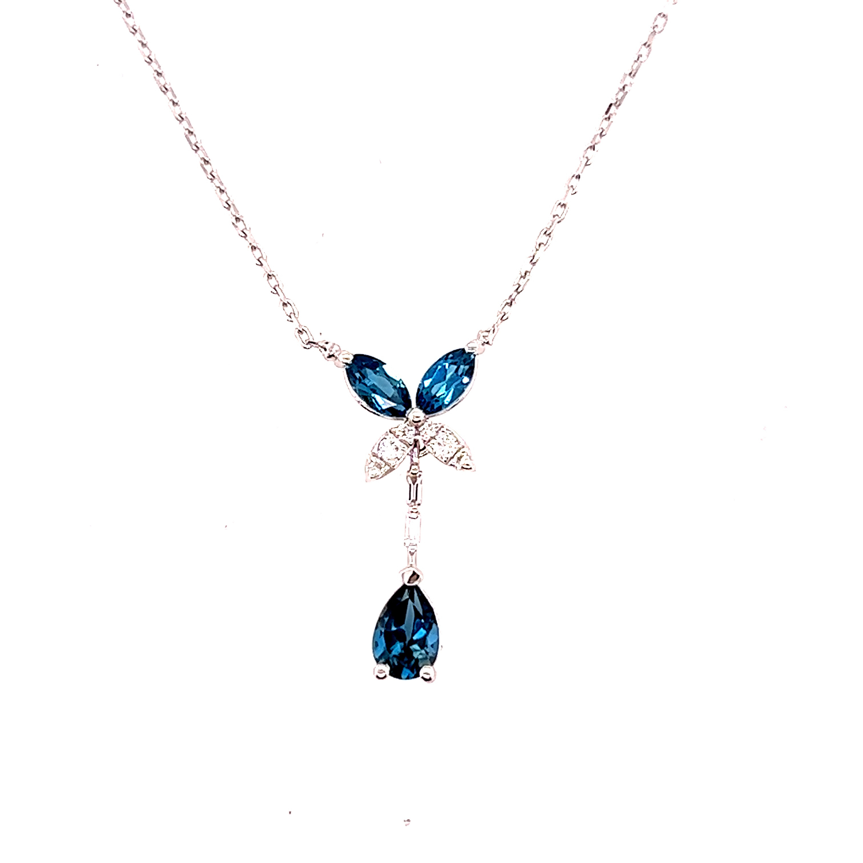 Колие от "Jacklin hugasian" в бяло злато с диаманти и Лондон топаз.