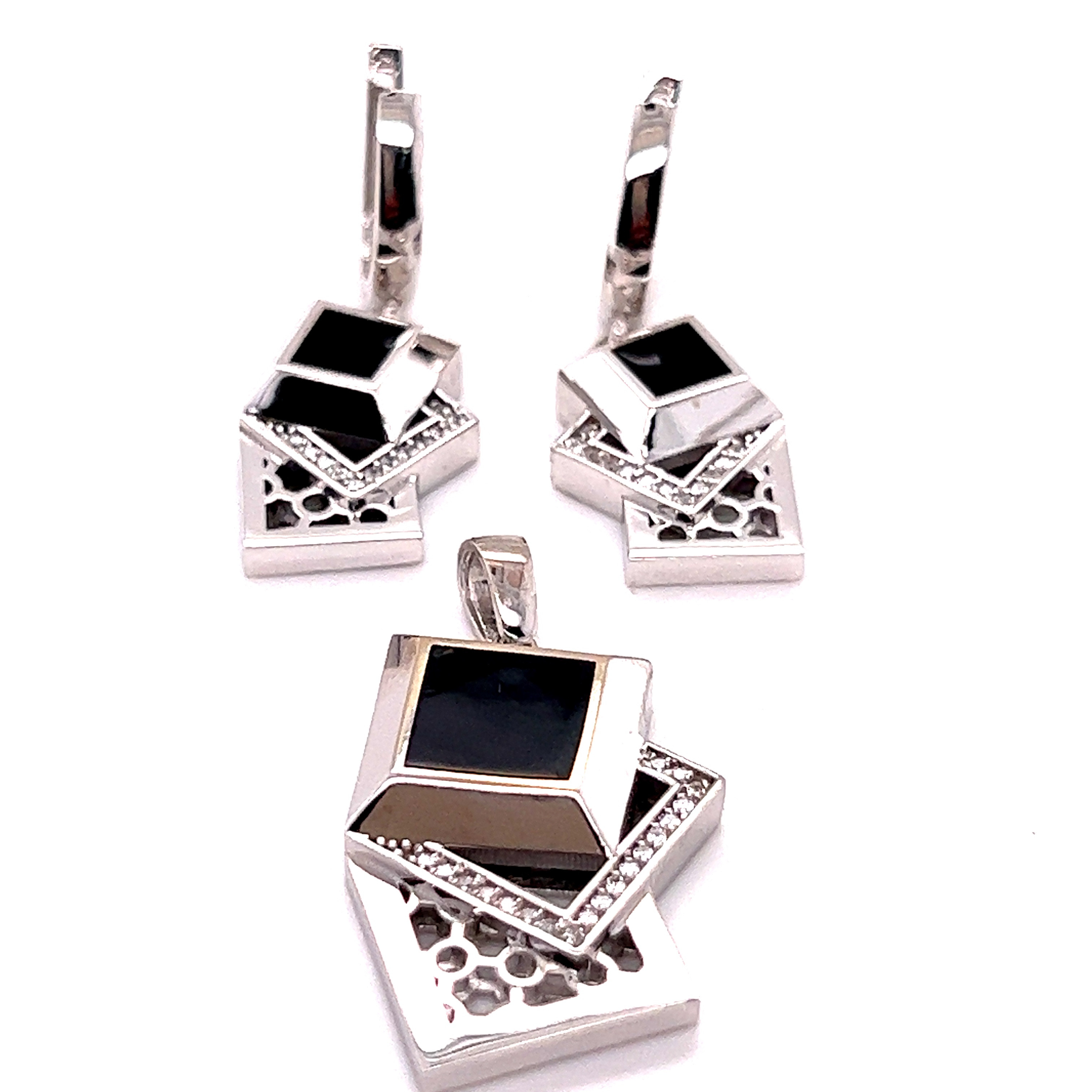 Комплект от “Jacklin hugasian” в бяло злато с оникс и циркони.