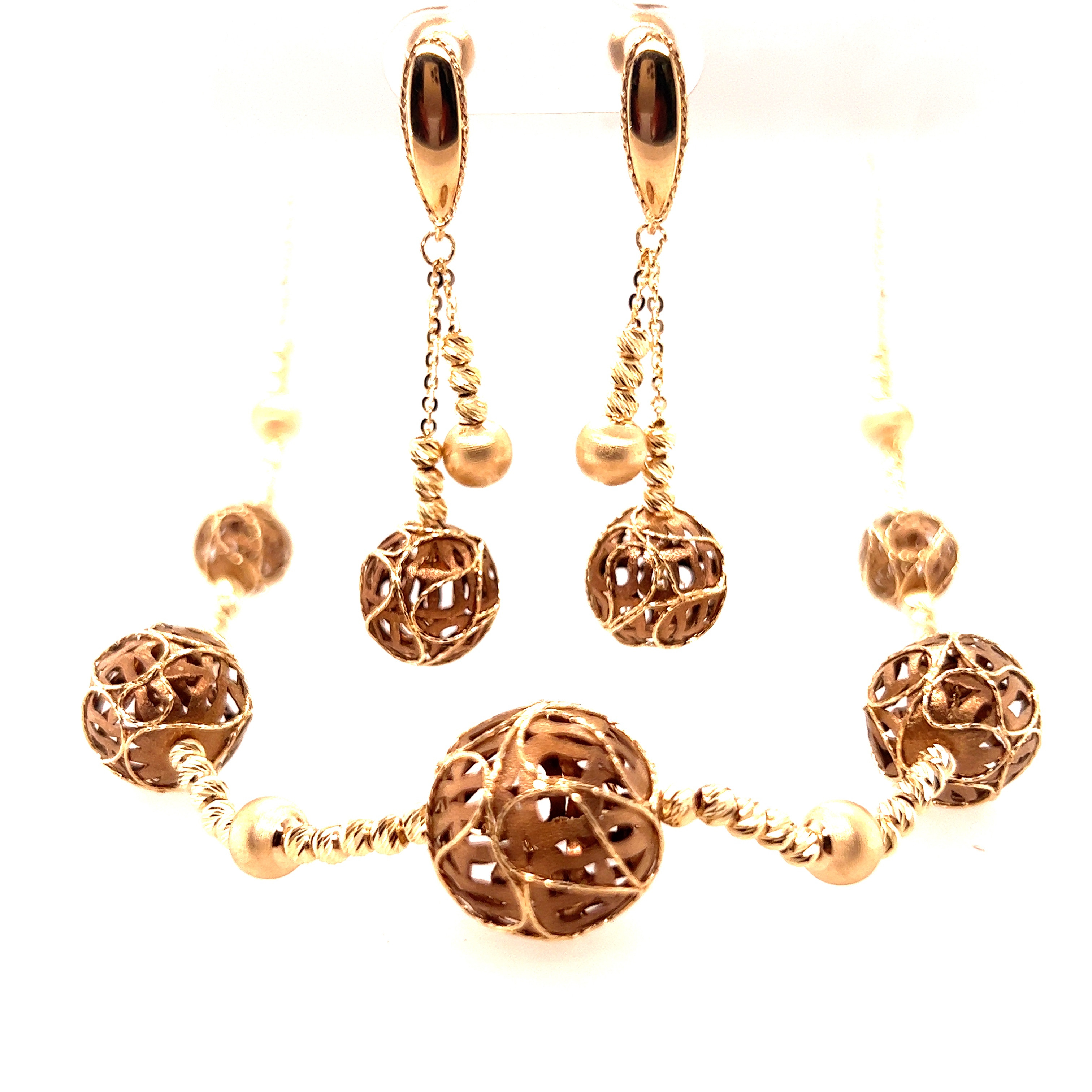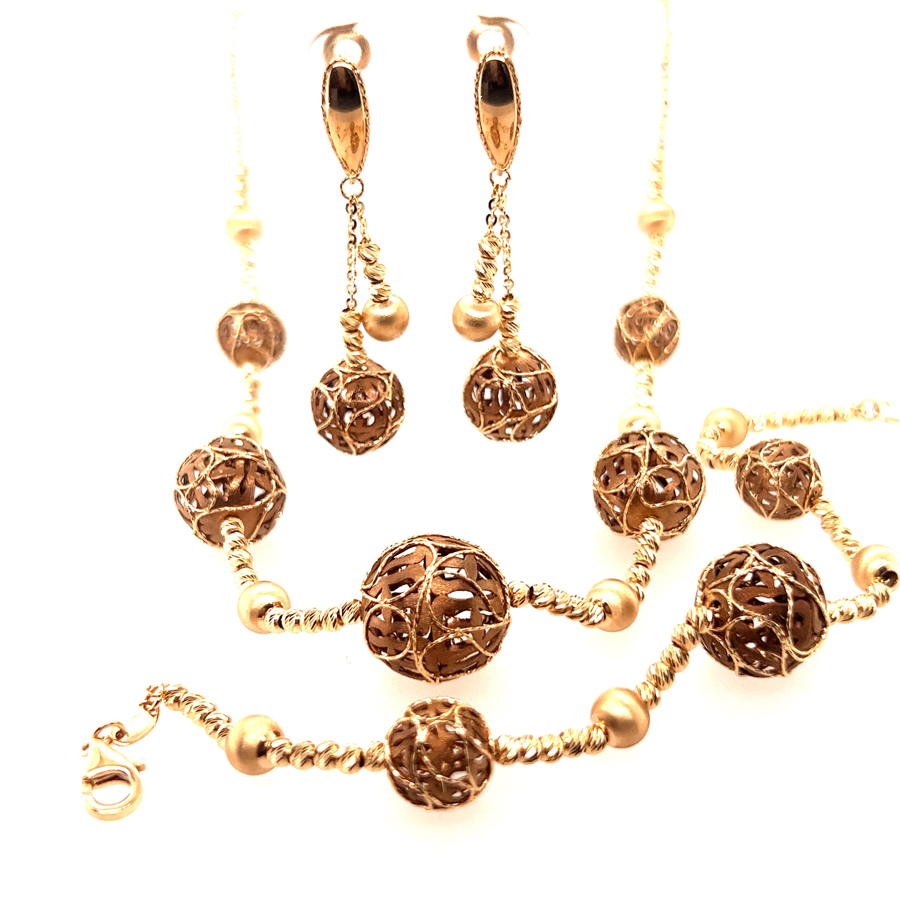 Комплект колие, обеци и гривна от “Jacklin hugasian” в жълто и кафяво злато.