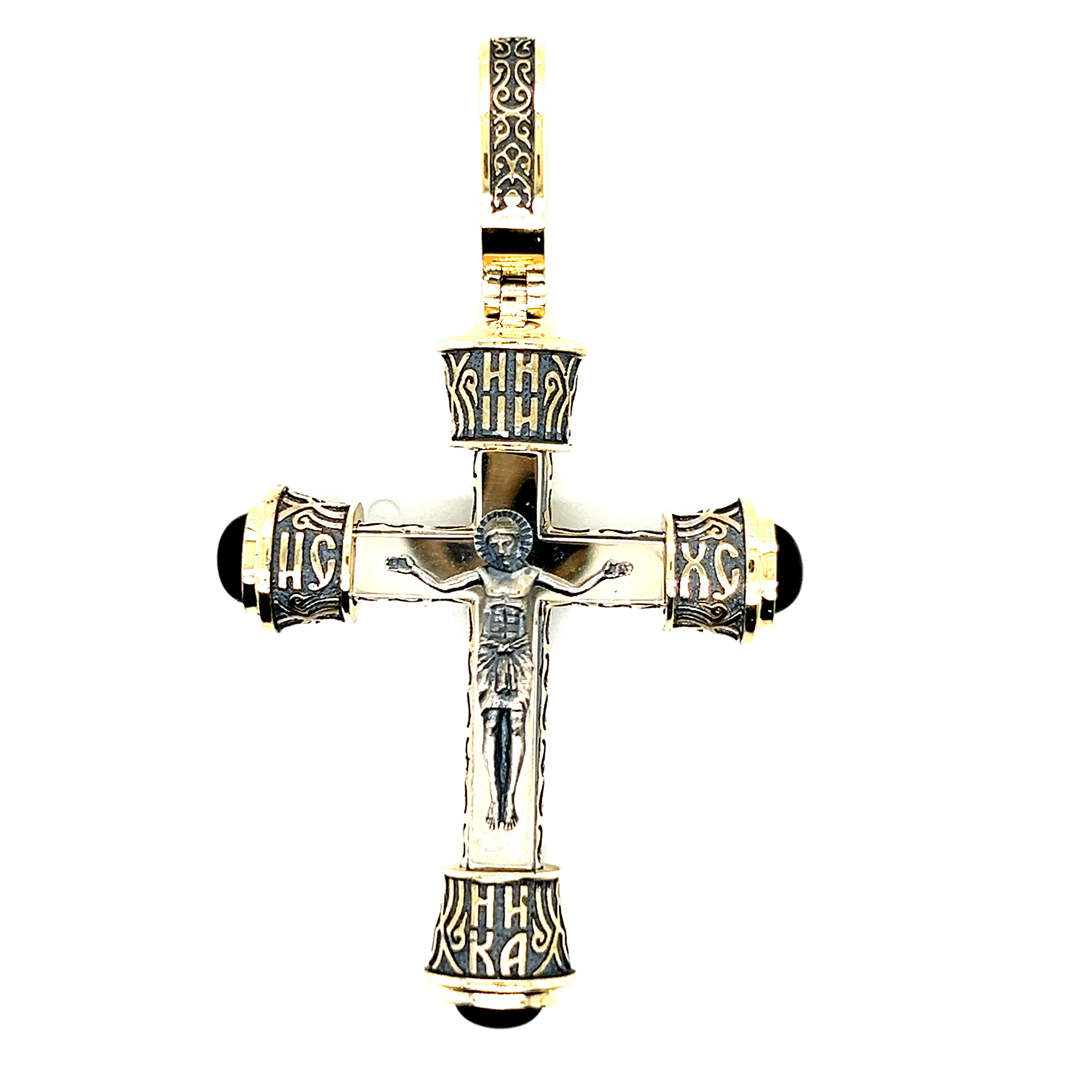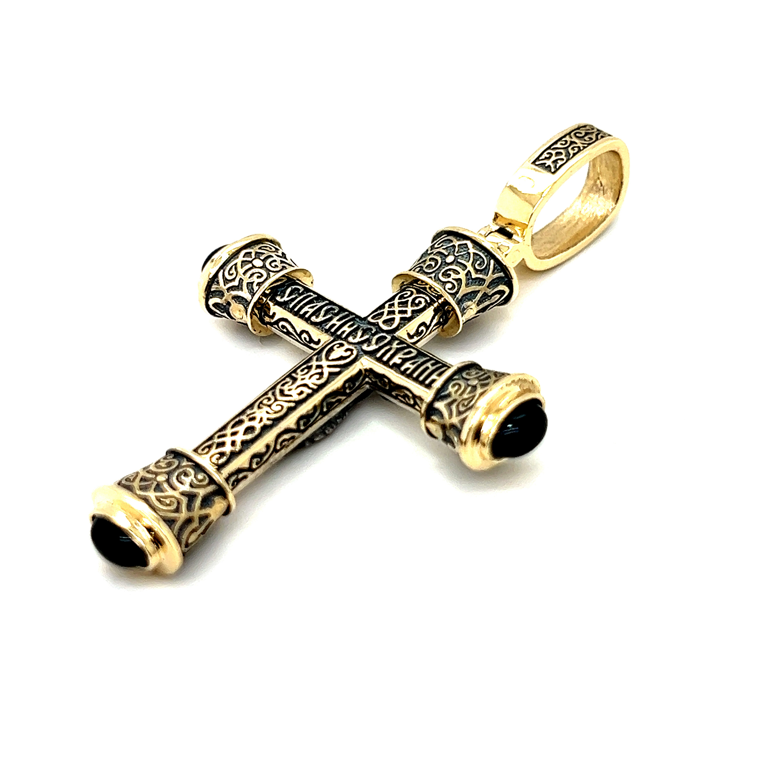 Висулка от " Jacklin hugasian " в жълто , бяло злато с оникс
