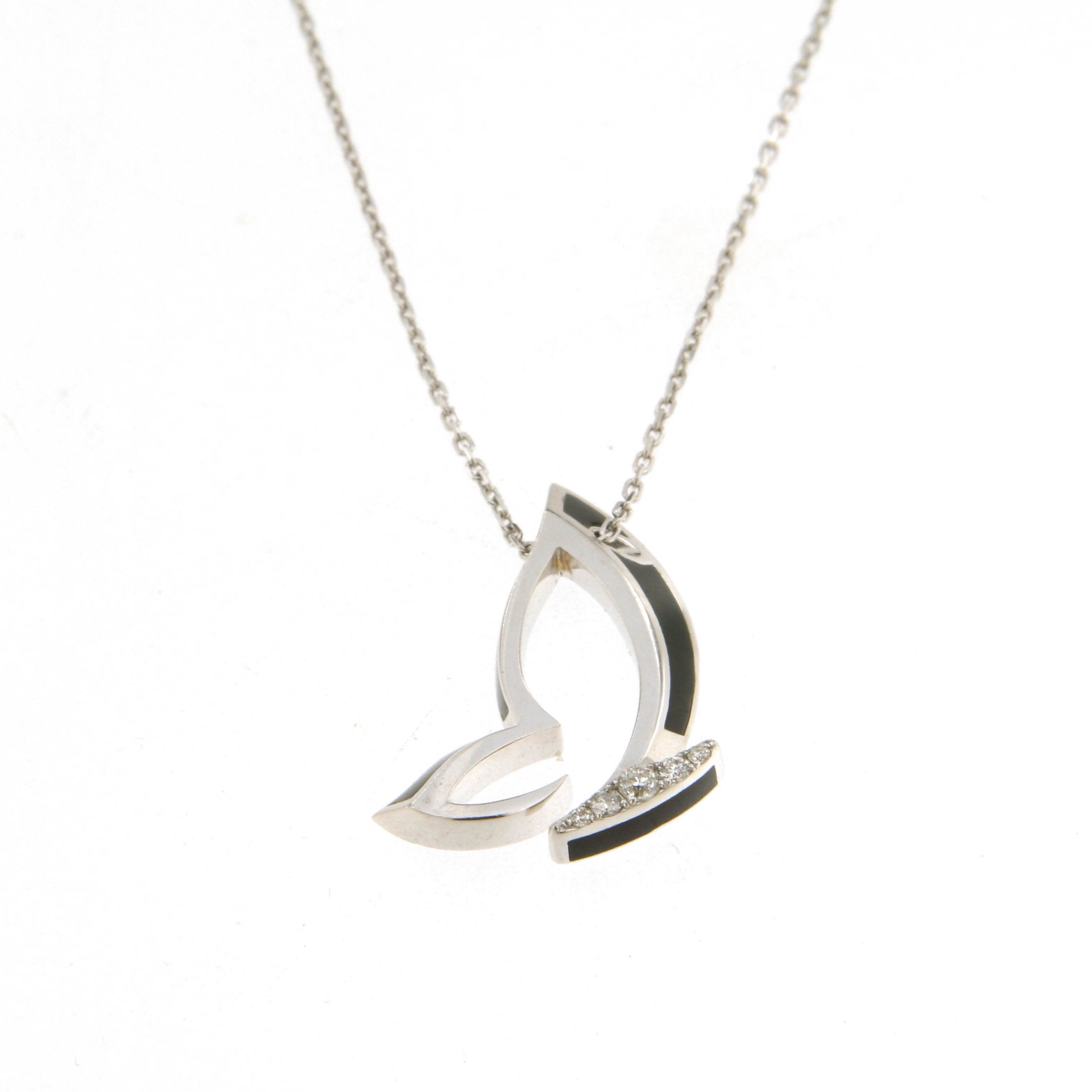 Колие от “Jacklin hugasian” бяло злато с диаманти и цветен емайл. Дължина 48 см.