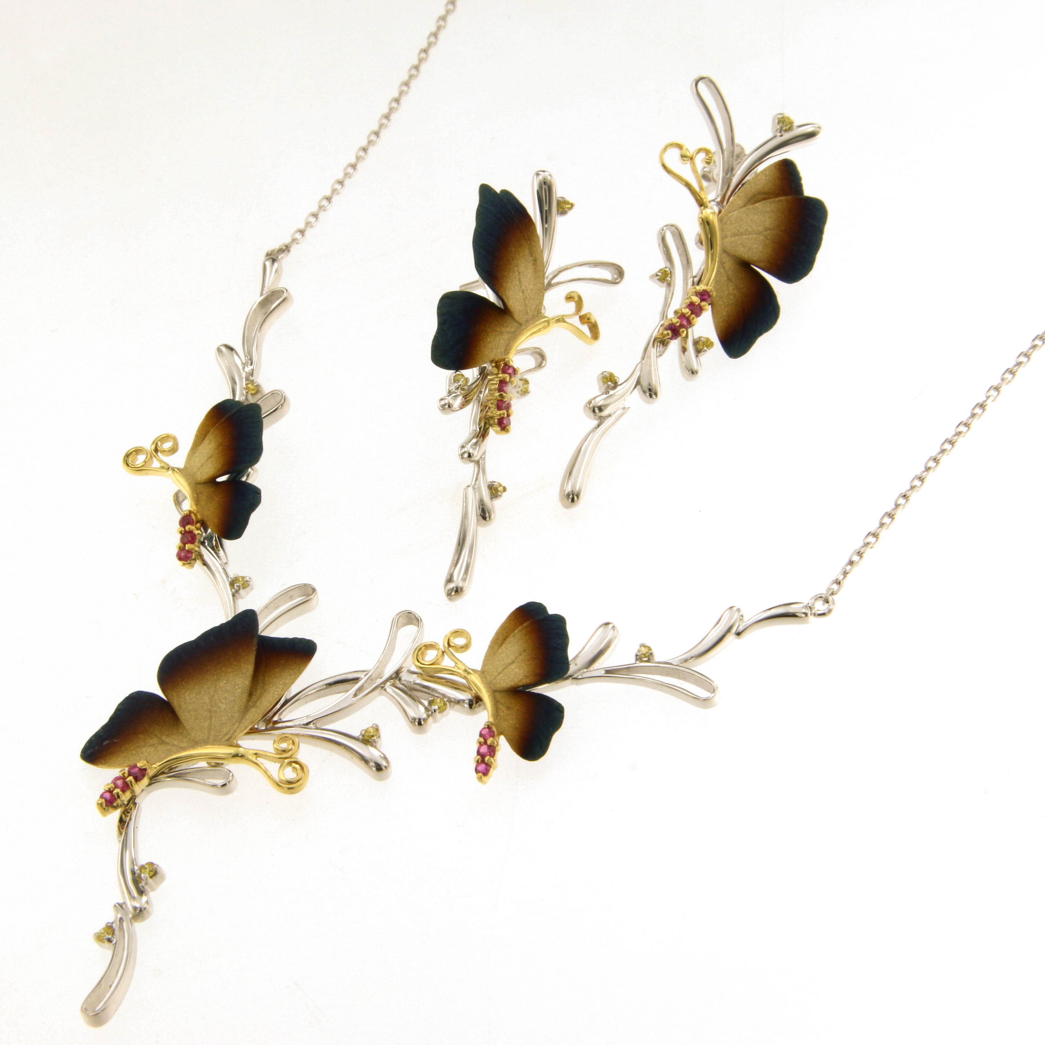 Колие от "Jacklin hugasian" в сребро с цветен емайл, цитрин и рубин. Колекция "Roberto Bravo"