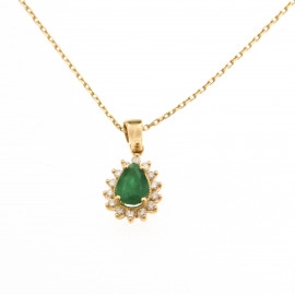 Колие от “Jacklin hugasian” в жълто злато с диаманти и изумруд. Дължина 45 см.