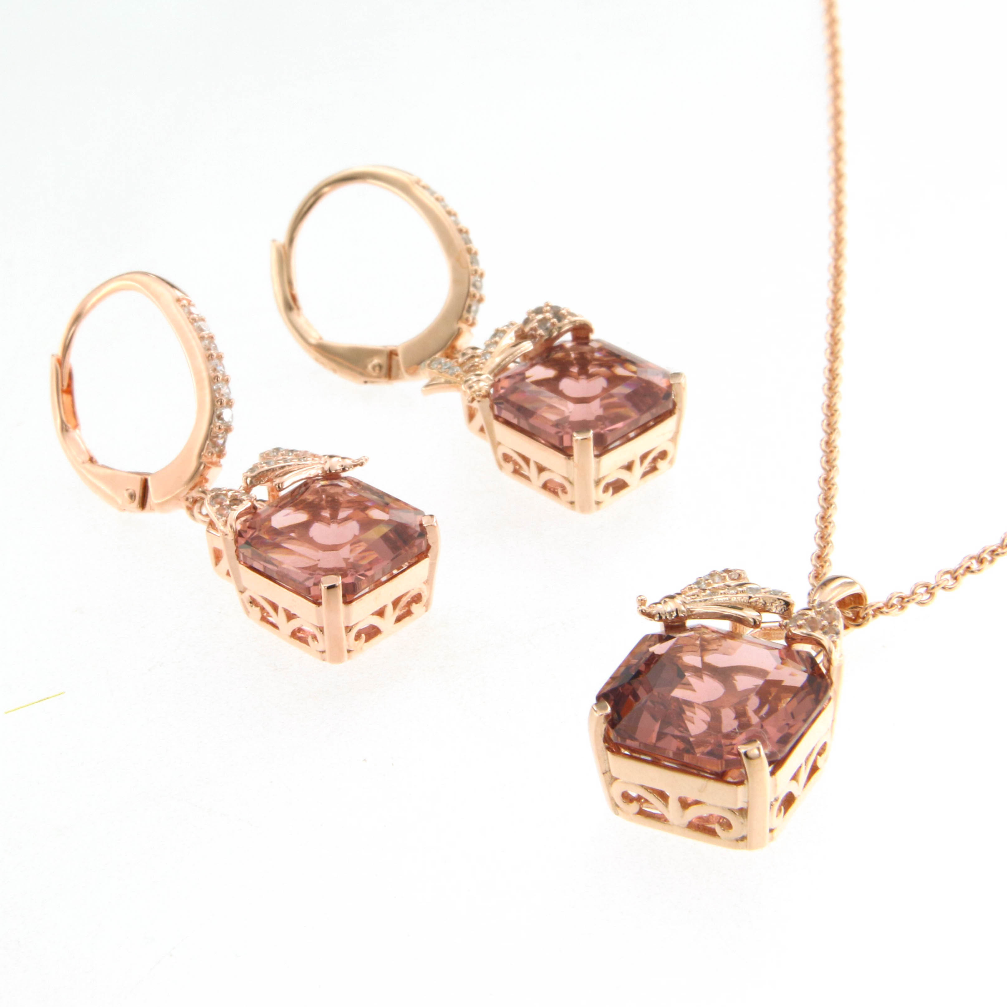 Комплект колие, обеци и пръстен от “Jacklin hugasian” в розово сребро с морганит и циркони.