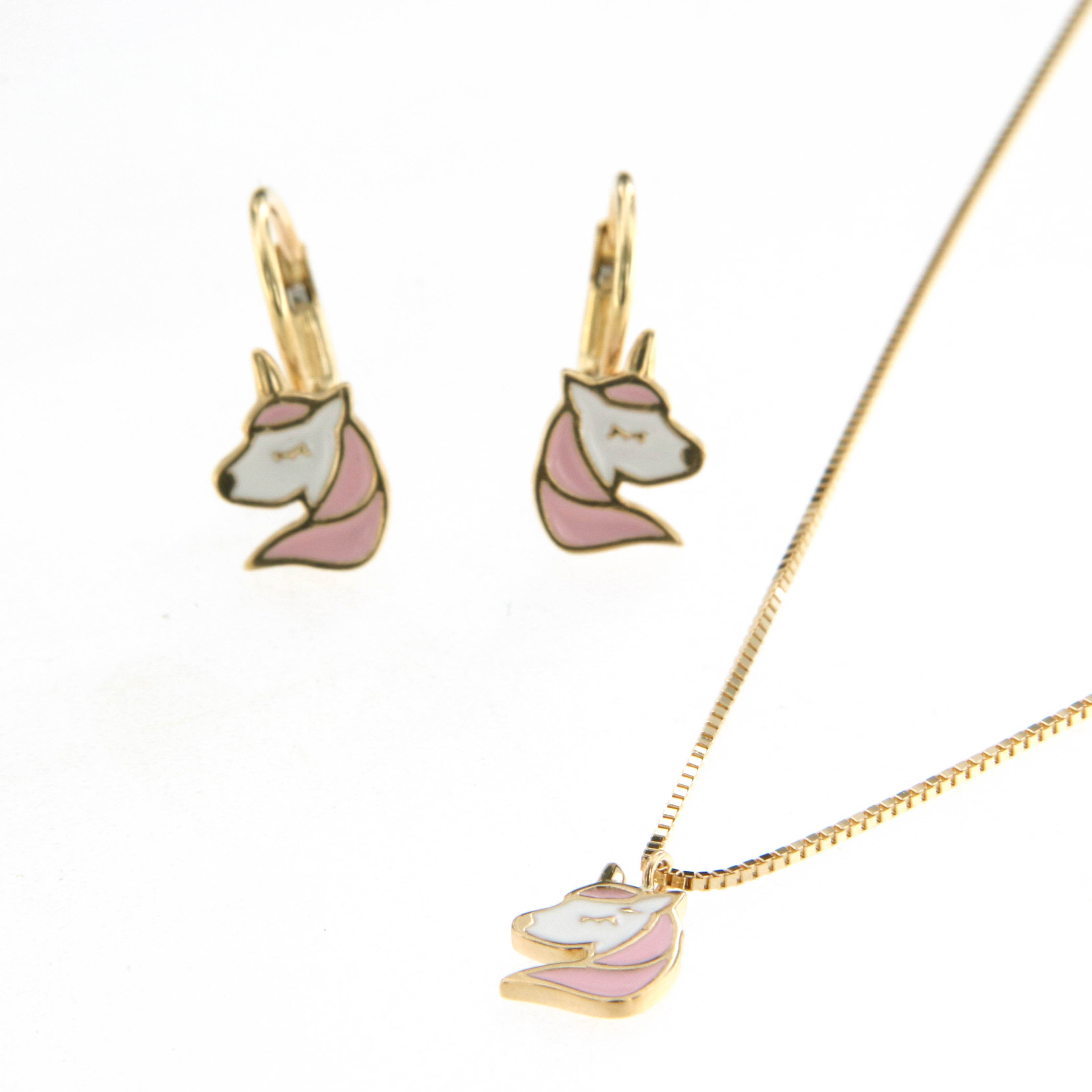 Комплект от “Jacklin hugasian” в жълто злато с цветен емайл.