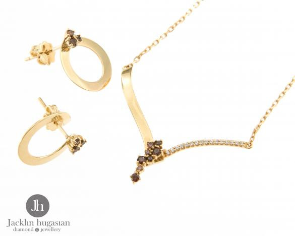 Обеци от "Jacklin " в жълто злато с цирконии и опушен топаз | Jacklin hugasian