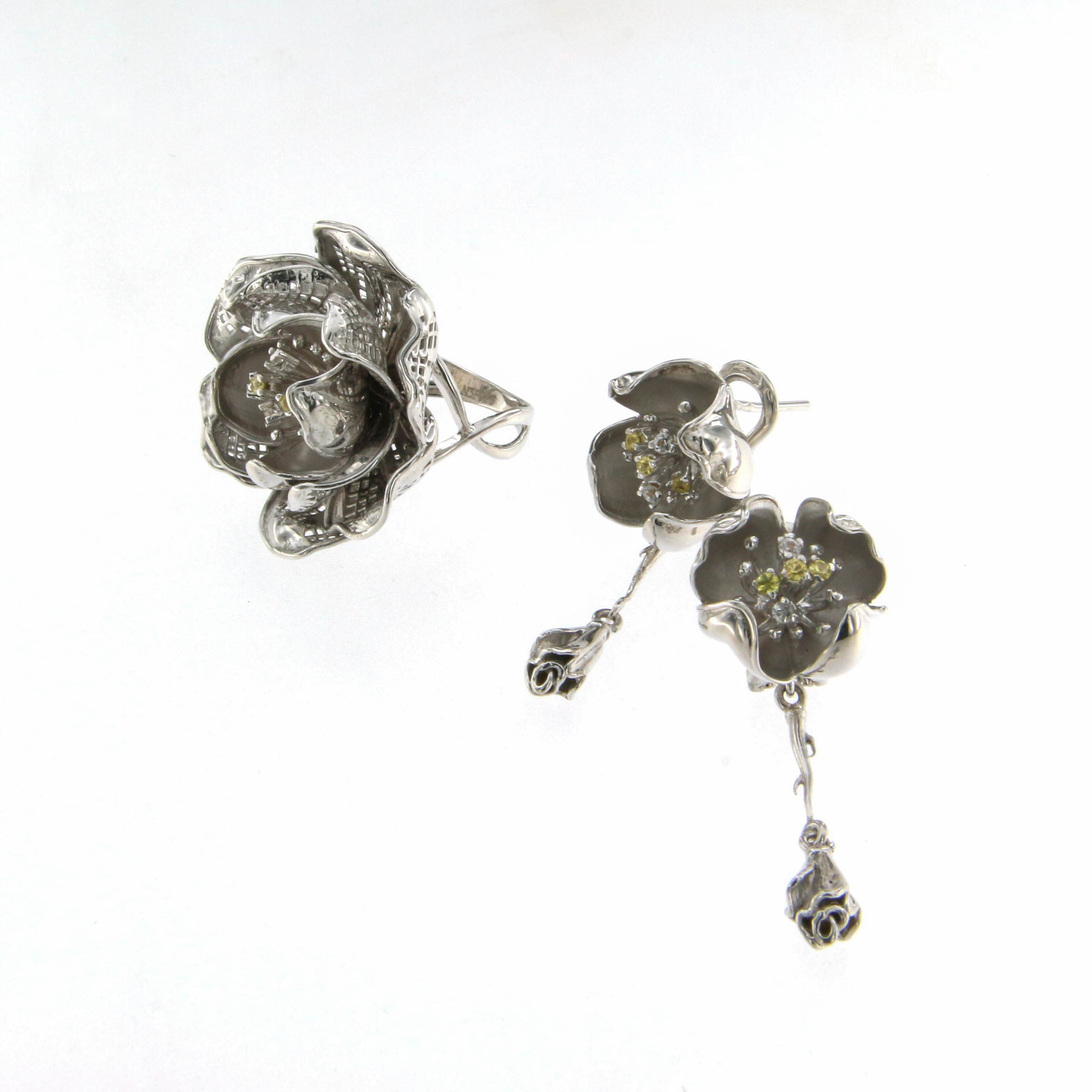 Обеци от "Jacklin " в сребро с филигранна обрабока, цитрин и циркони