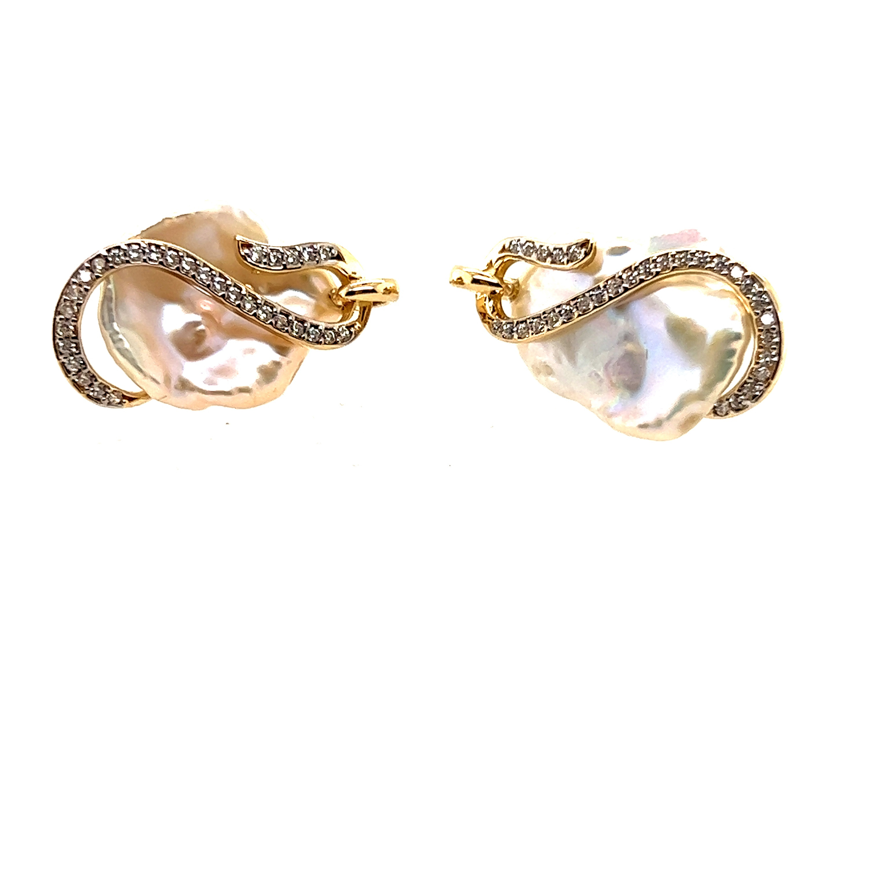 Обеци от " Jacklin hugasian " в жълто злато с перла и циркони.