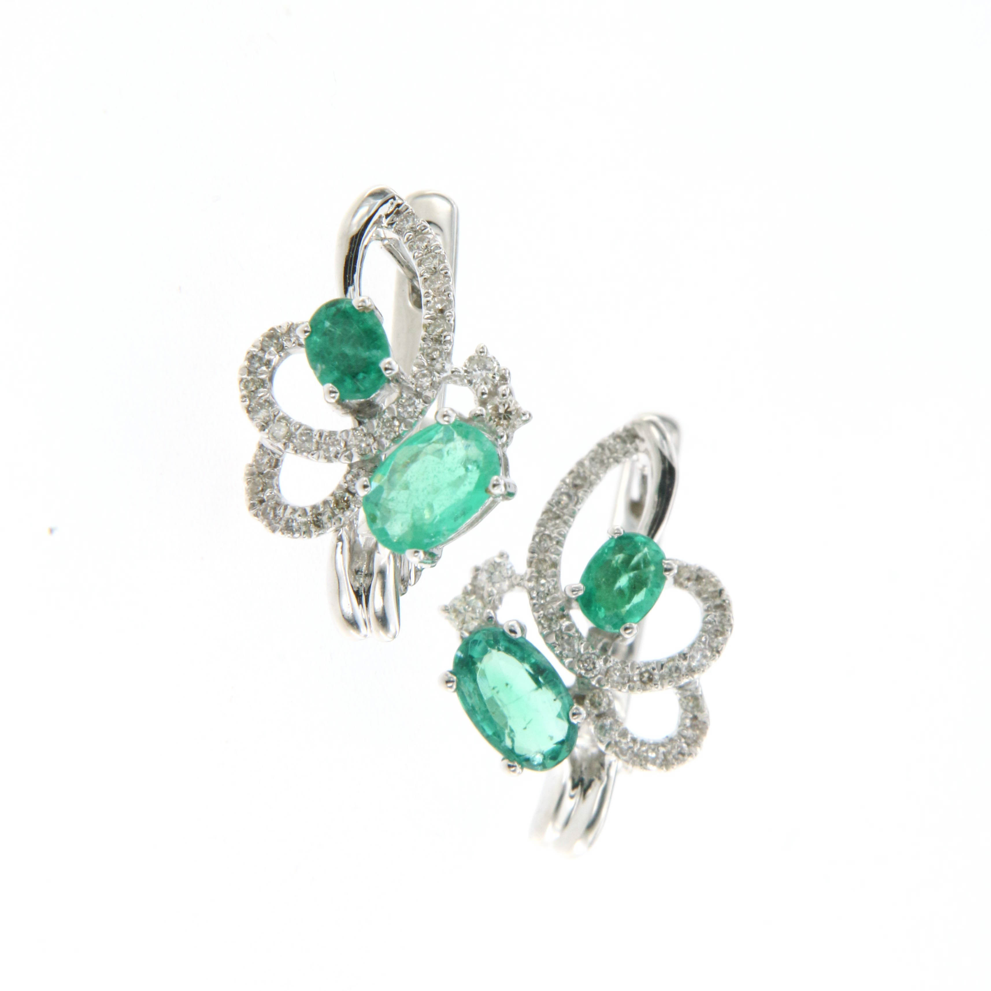 Обеци от "Jacklin hugasian" в бяло злато с диаманти, естествен изумруд. Дължина 2 см., широчина 1 см.
