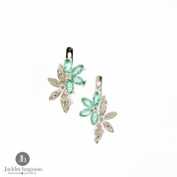 Обеци от "Jacklin hugasian" в бяло злато с диаманти и изумруд.