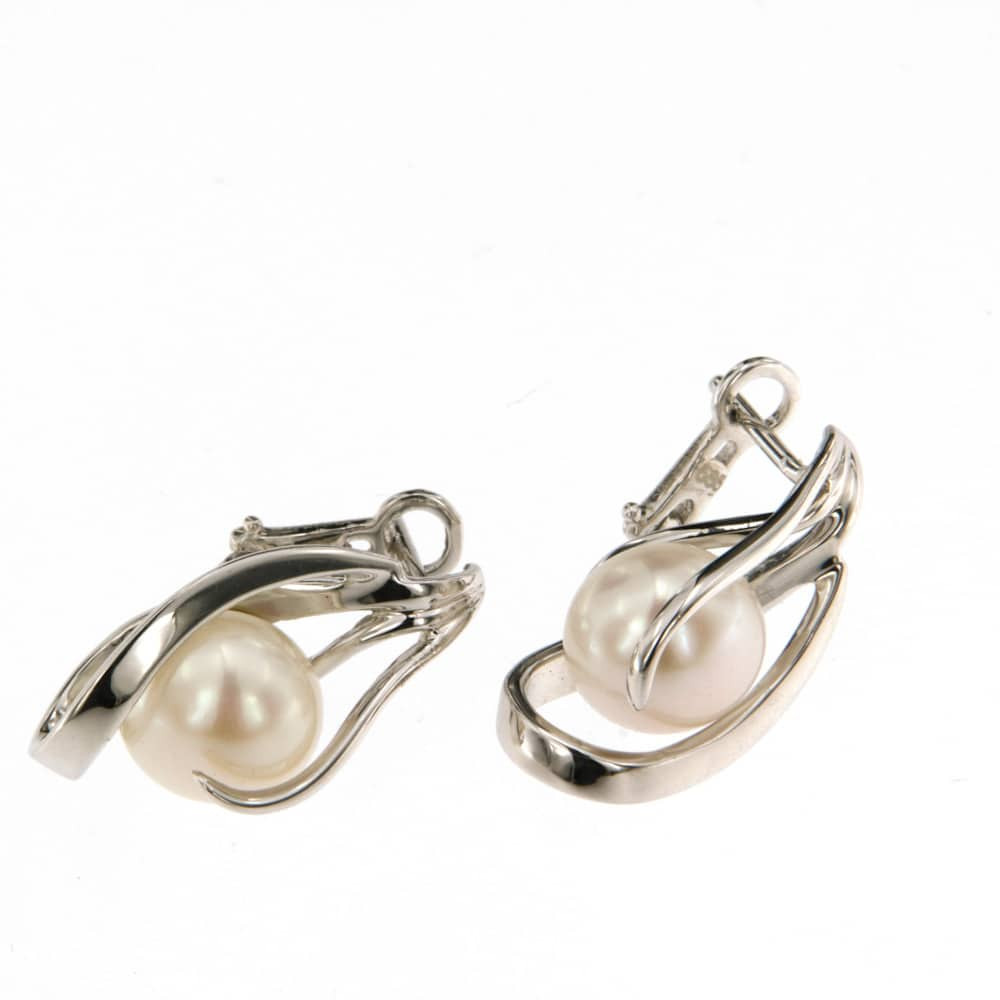 Обеци от " Jacklin hugasian " в бяло злато с култивирани бели перли.Дължина обеци 2.1 см. , широчина 1.1 см.