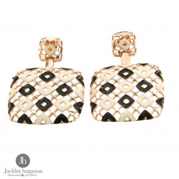 Обеци от "Jacklin hugasian" в розово сребро с разноцветен емайл. Дължина 4.00 см., широчина 3.00 см.