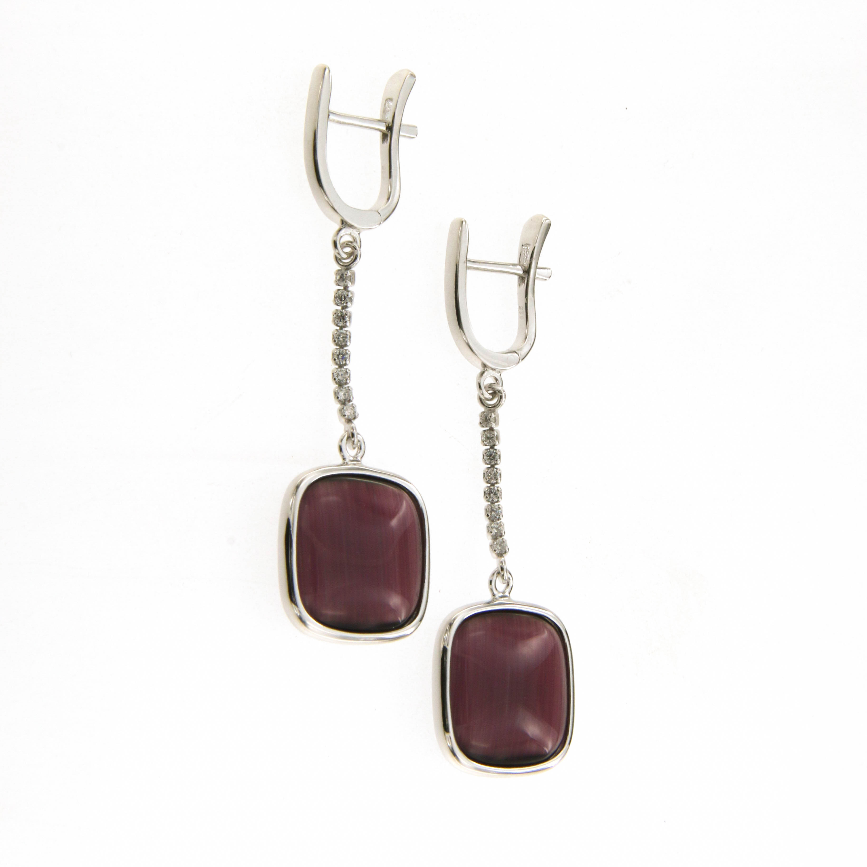 Обеци от "Jacklin hugasian" в сребро с камък "Котешко око" и циркони.