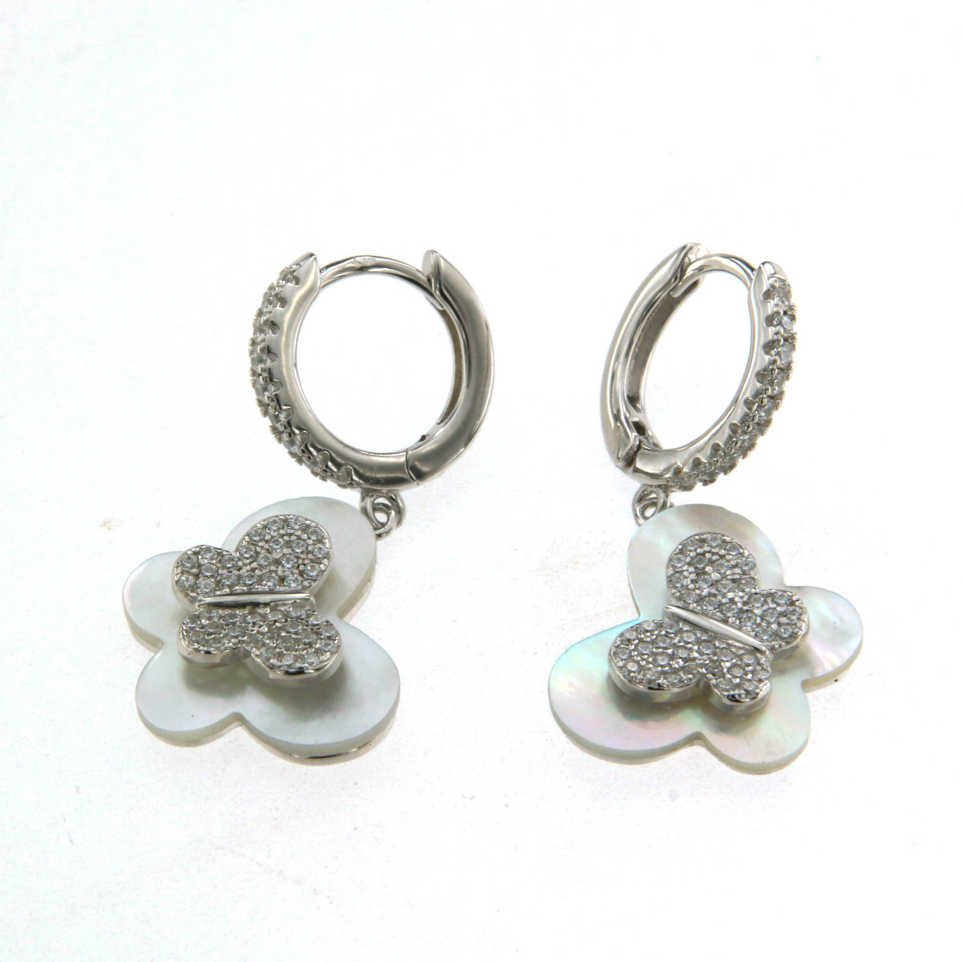 Обеци от "Jacklin hugasian" в сребро със седеф и цирконии. Дължина обеци 3.00 см., широчина 1.5 см.
