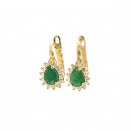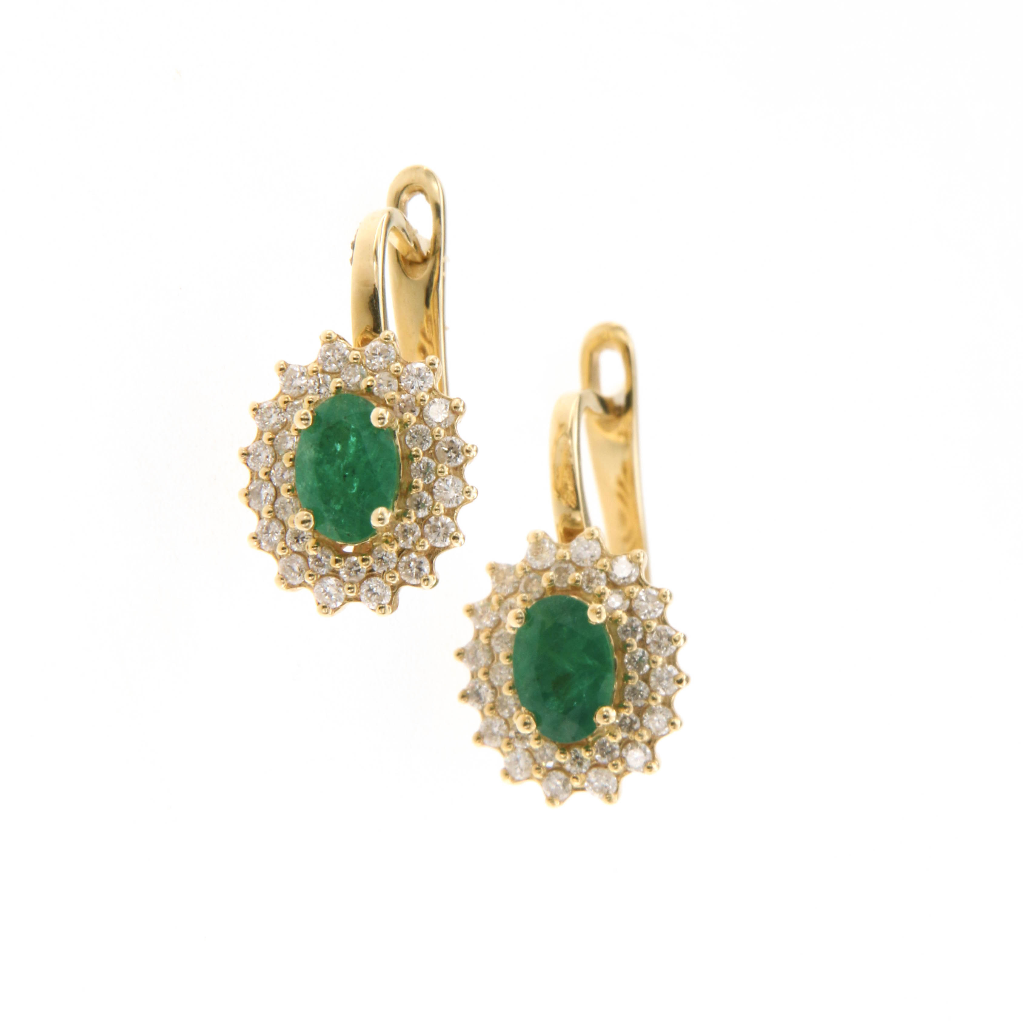 Обеци от “Jacklin hugasian” в жълто злато с изумруд и диаманти. Дължина 1.5 см.,широчина 1.0 см.