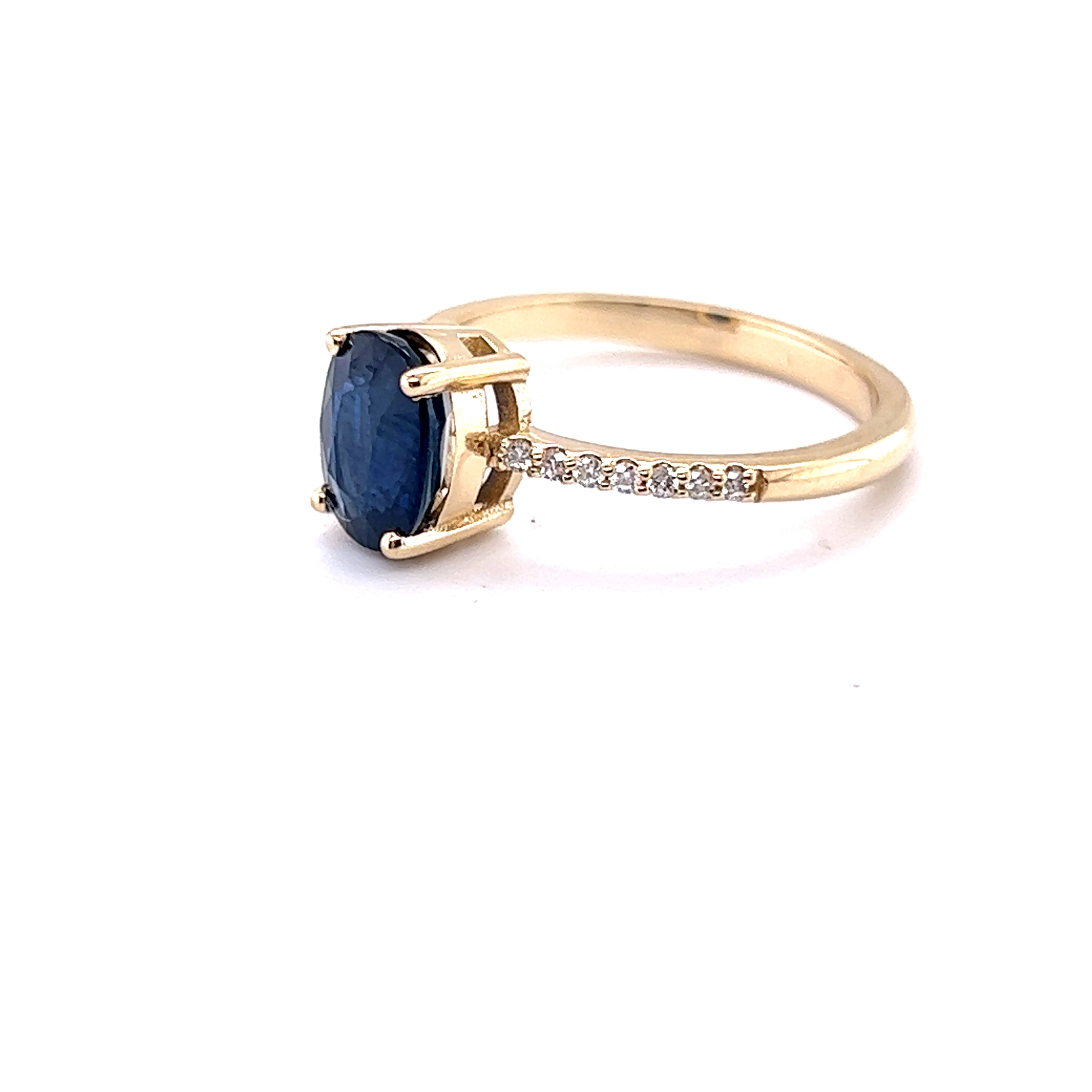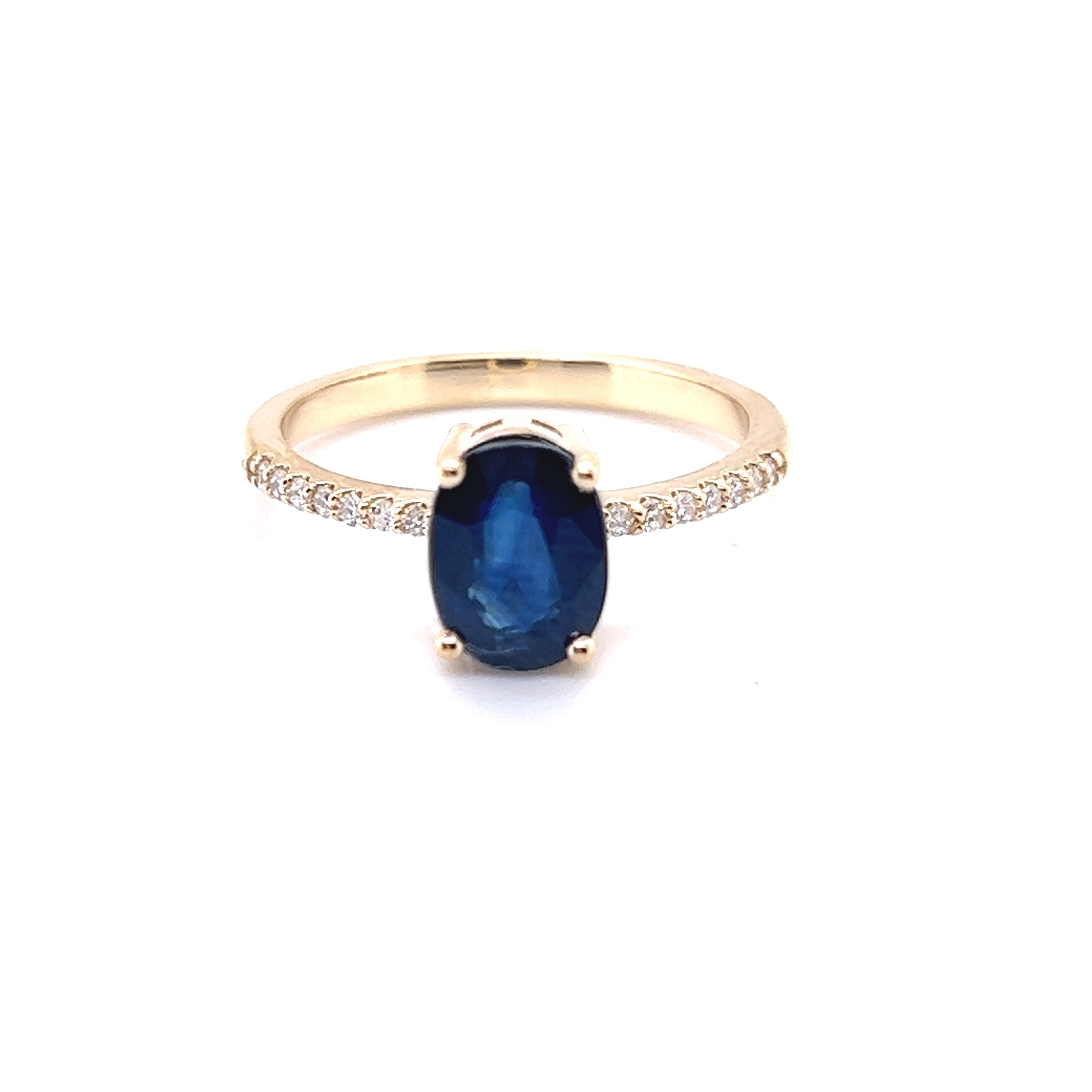 Пръстен от “Jacklin hugasian” в жълто злато с сапфир и диаманти.