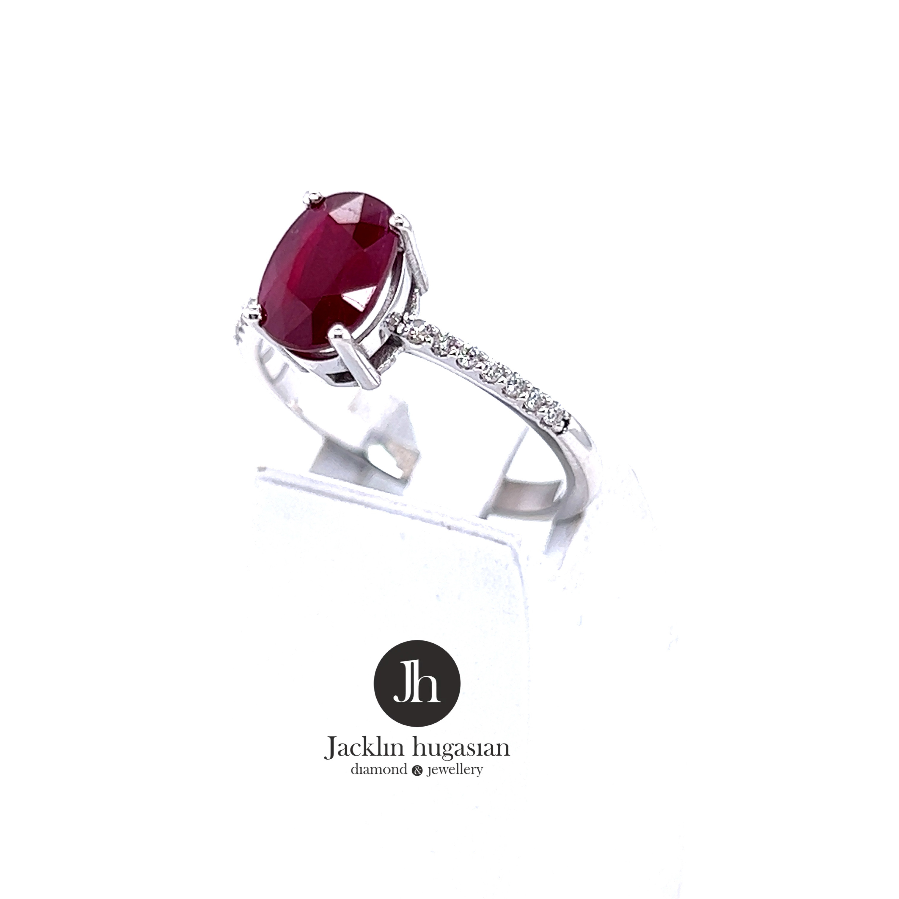 Пръстен от “Jacklin hugasian” в бяло злато с рубин и диаманти.