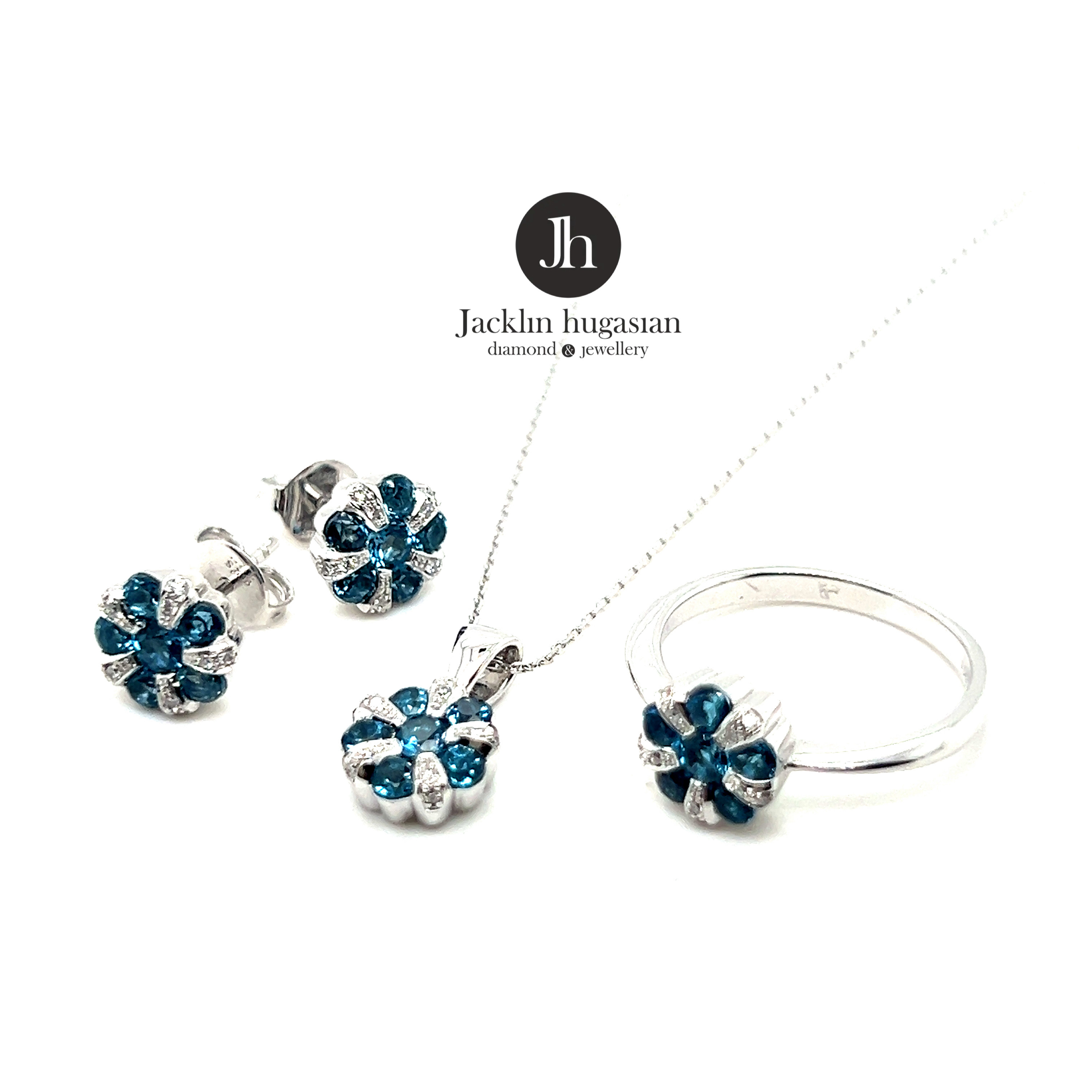 Пръстен от “Jacklin hugasian” в бяло злато с диаманти и топаз.