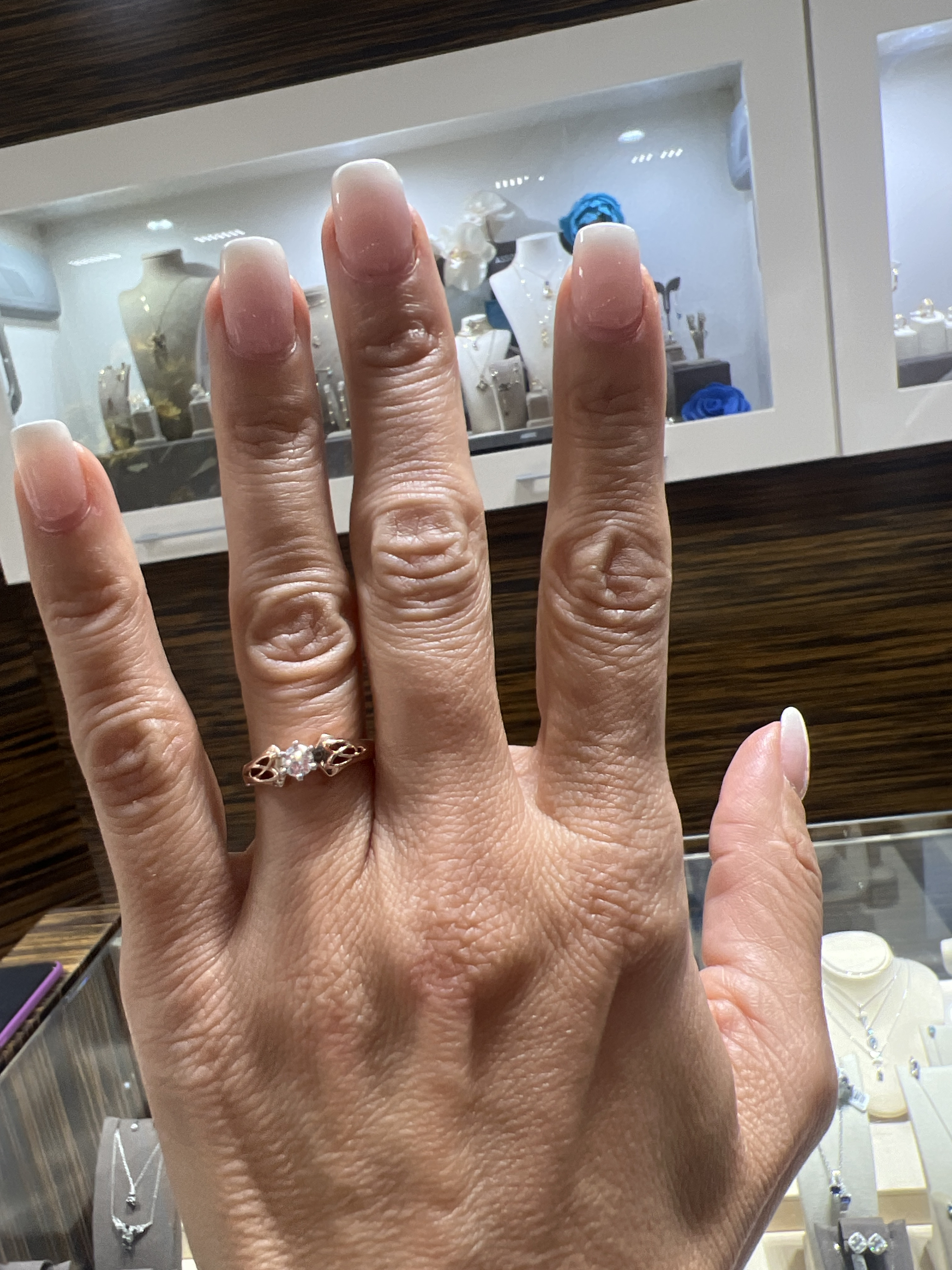 Пръстен от "Jacklin hugasian" в розово злато с диамант.