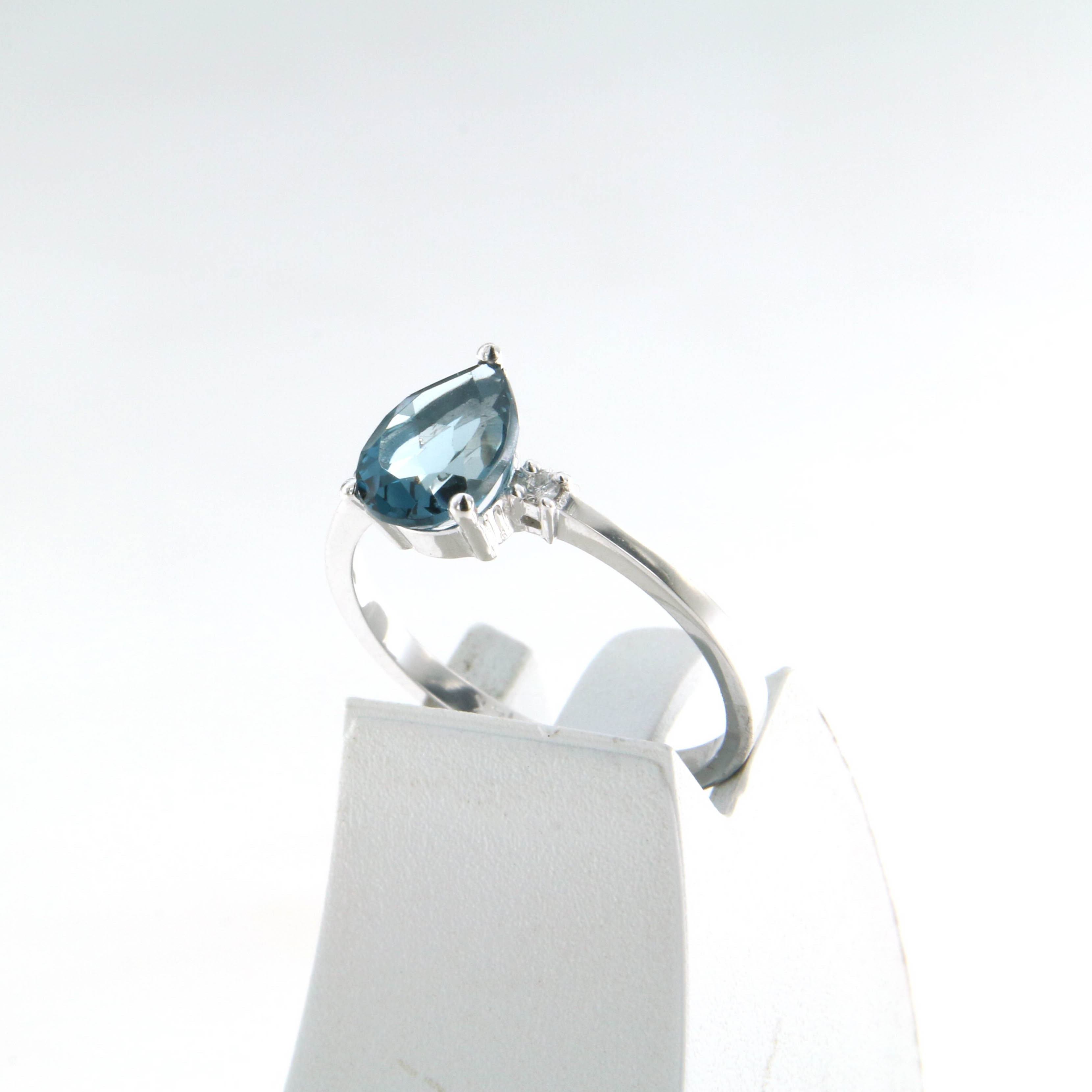 Пръстен от “Jacklin hugasian” бяло злато с диаманти и Лондон топаз.
