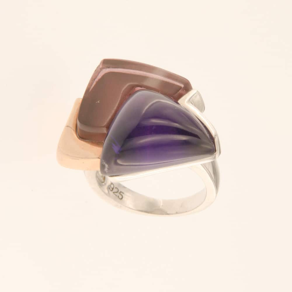 Пръстен от "Jacklin hugasian" в розово и бяло сребро с аметист.