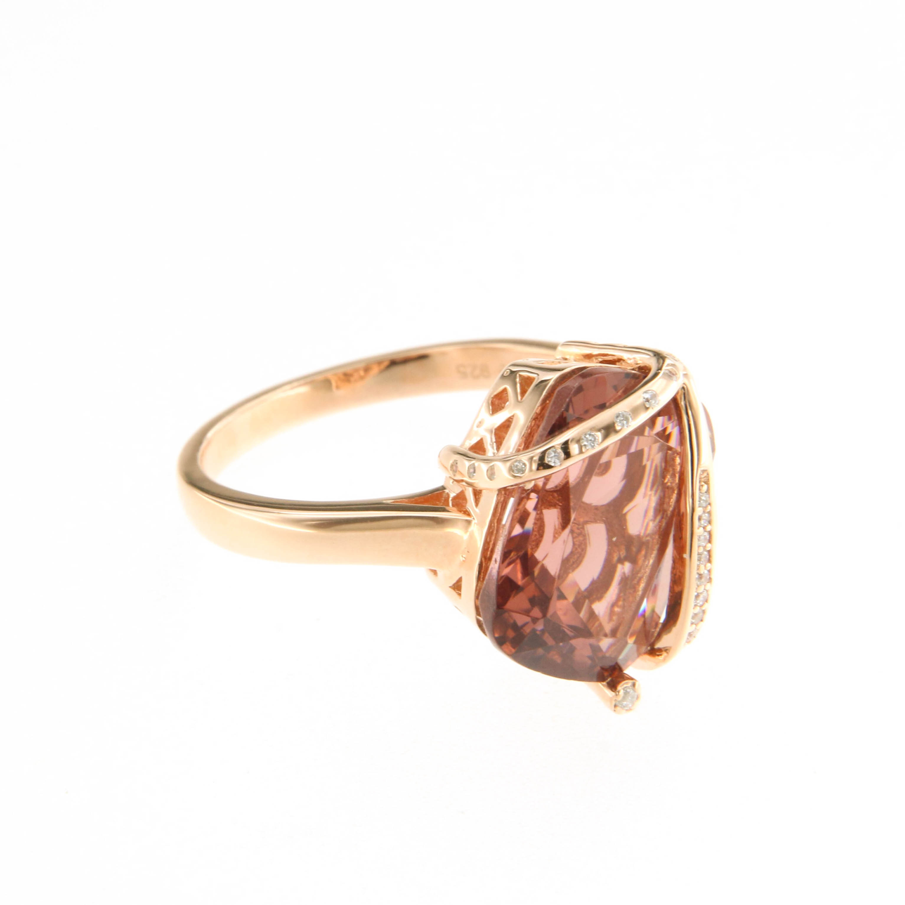 Пръстен от “Jacklin hugasian” в розово сребро с морганит и циркони.