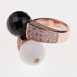 Пръстен от "Jacklin " в розово сребро с цирконии, черен фасетиран оникс и бял ахат