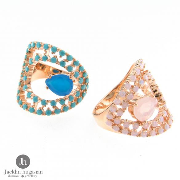 Пръстенът се предлага и в комбинация с розово сребро пресован тюркоаз и син ахат.