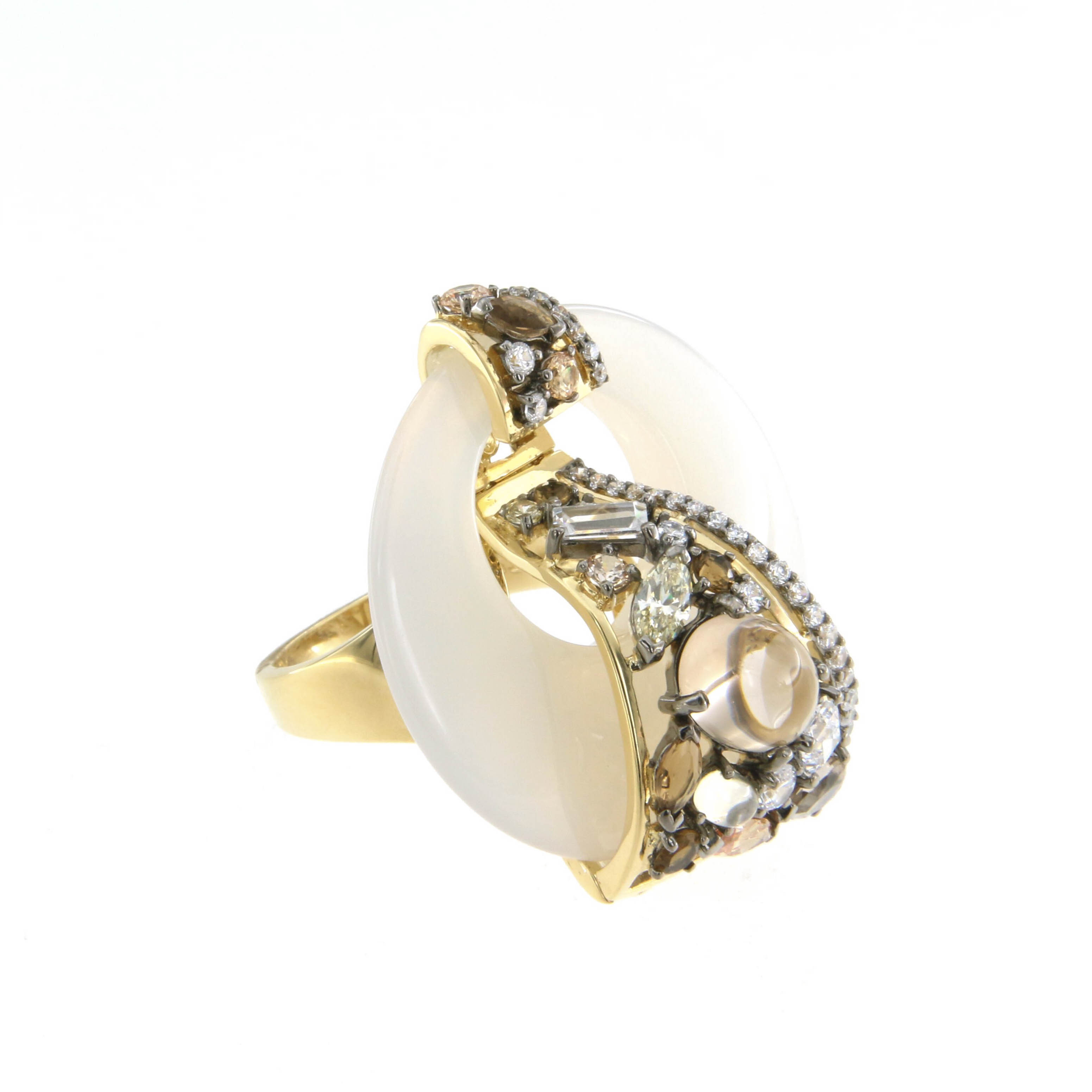 Пръстен от “Jacklin hugasian” в сребро с позлата, лунен камък, опушен топаз, цирконии, цитрин.