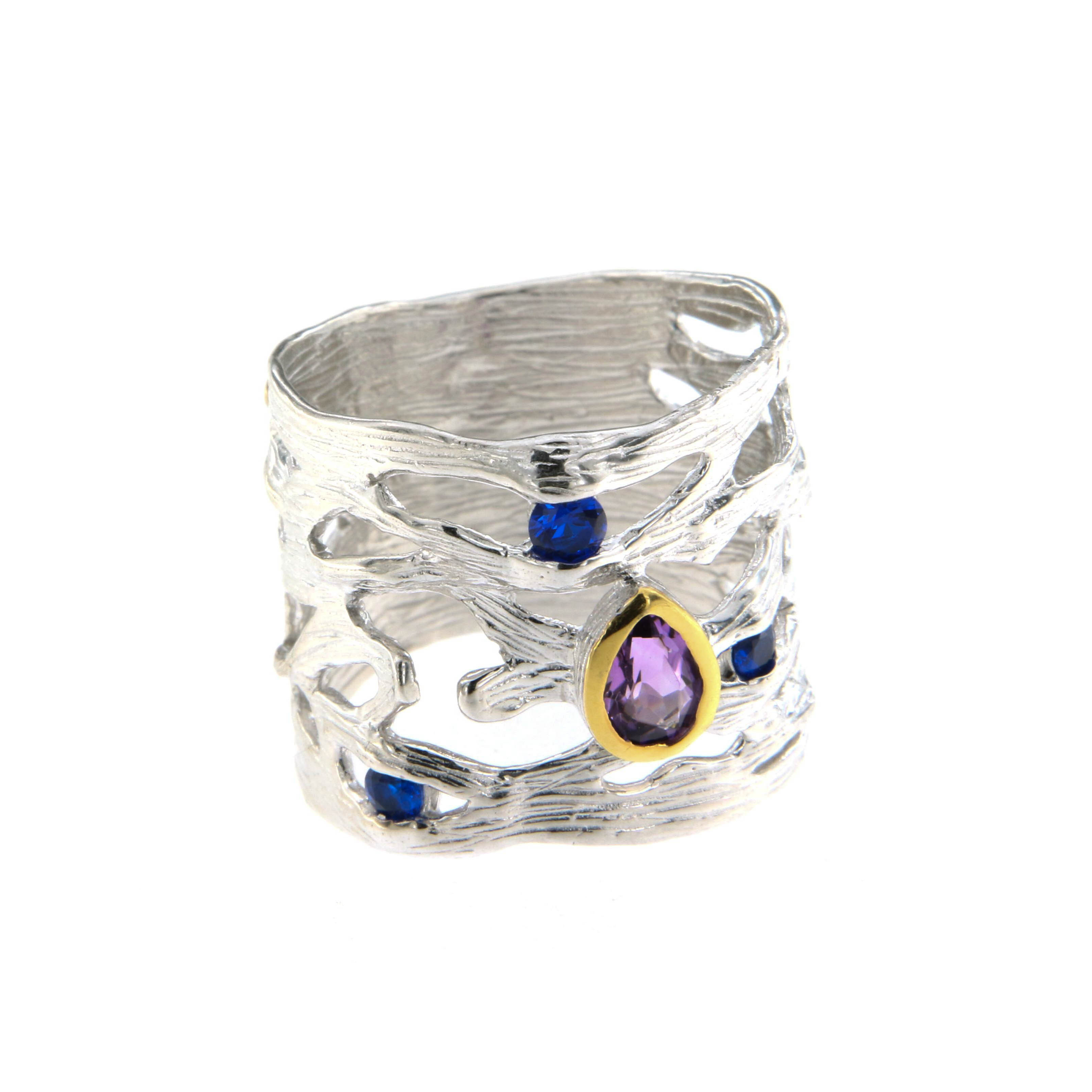 Пръстен от "Jacklin hugasian" в сребро с аметист и сапфири.