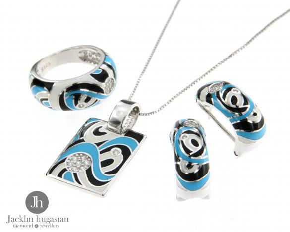 Пръстен от "Jacklin hugasian" в сребро с цирконии и разноцветен емайл.