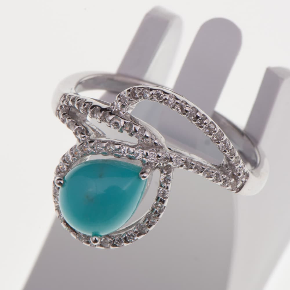 Пръстен от "Jacklin hugasian" в сребро с тюркоаз и цирконии.