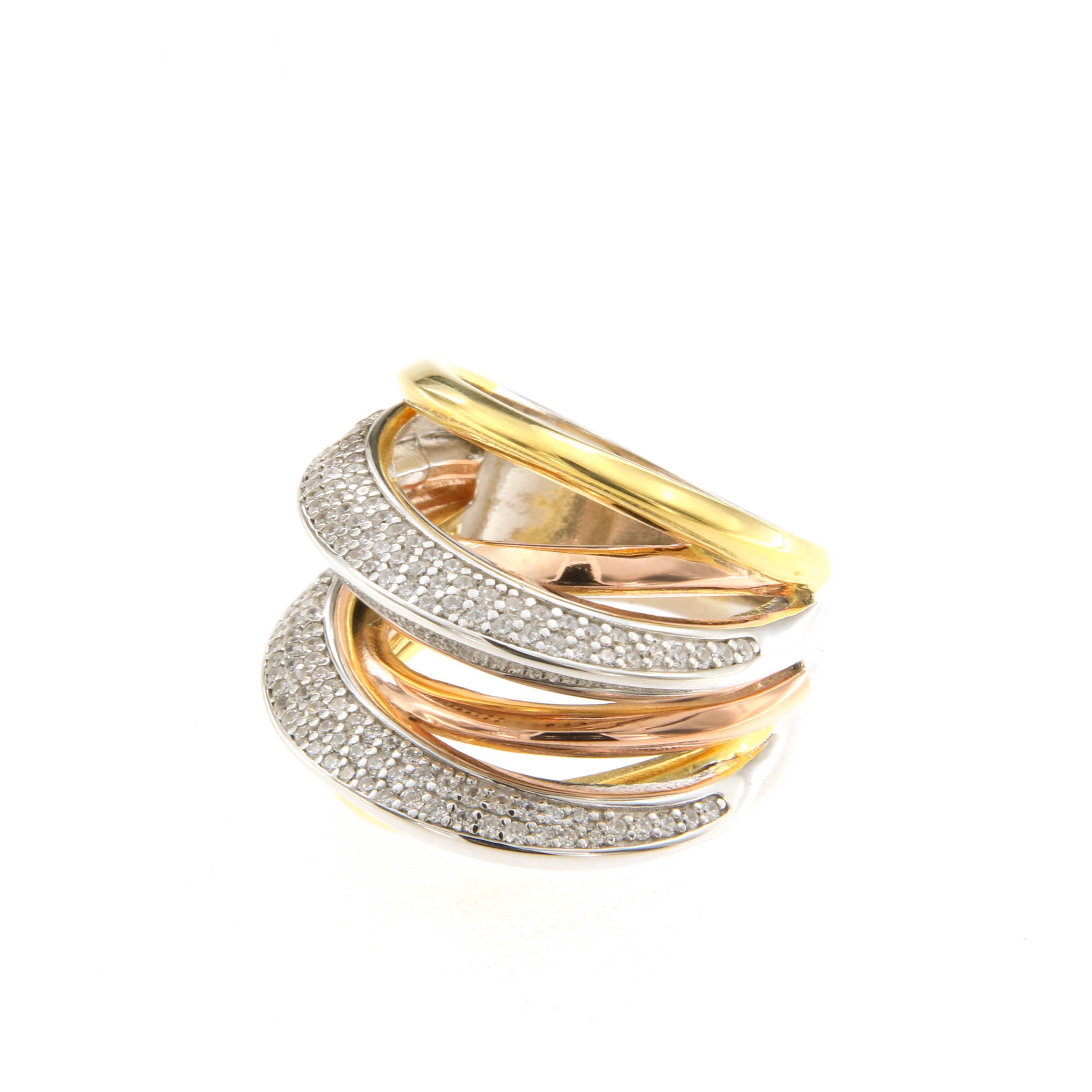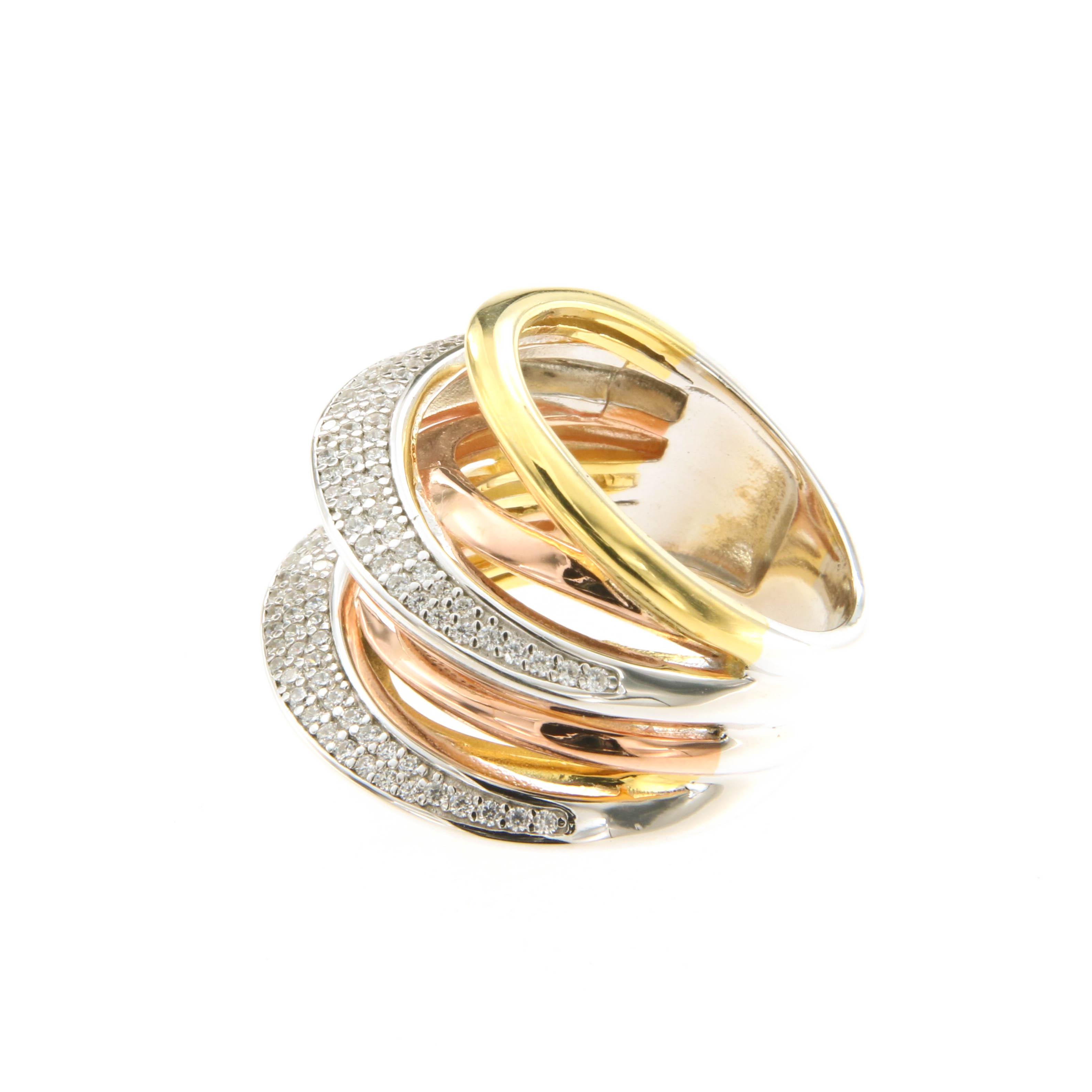 Пръстен от “Jacklin hugasian” в сребро с жълта и розова позлата,и циркони.
