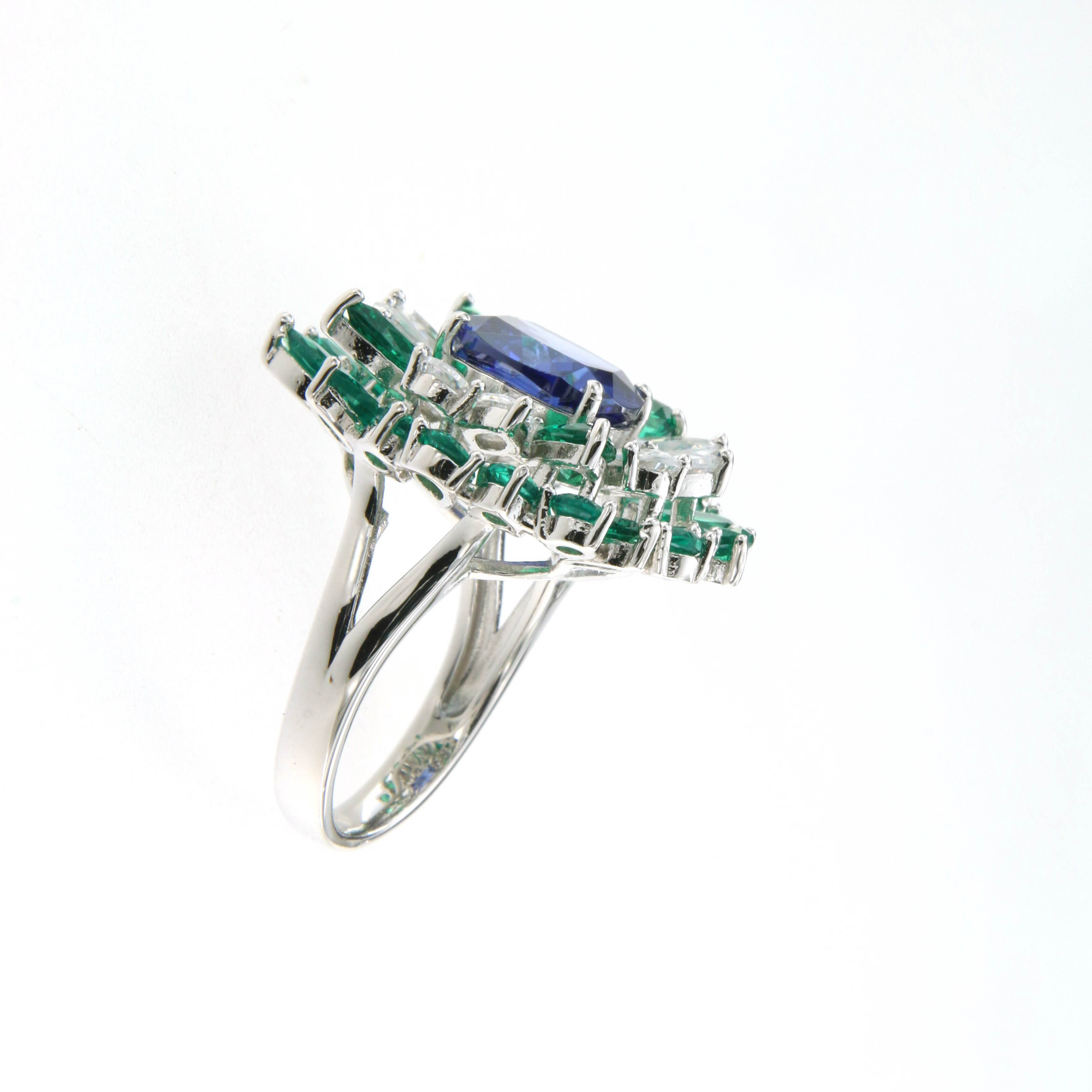 Пръстен от “Jacklin hugasian” в сребро,със сапфир и изумруди.