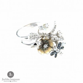 Пръстен от "Jacklin hugasian" в сребро със седеф, кралски седеф, цветен емайл и циркони.