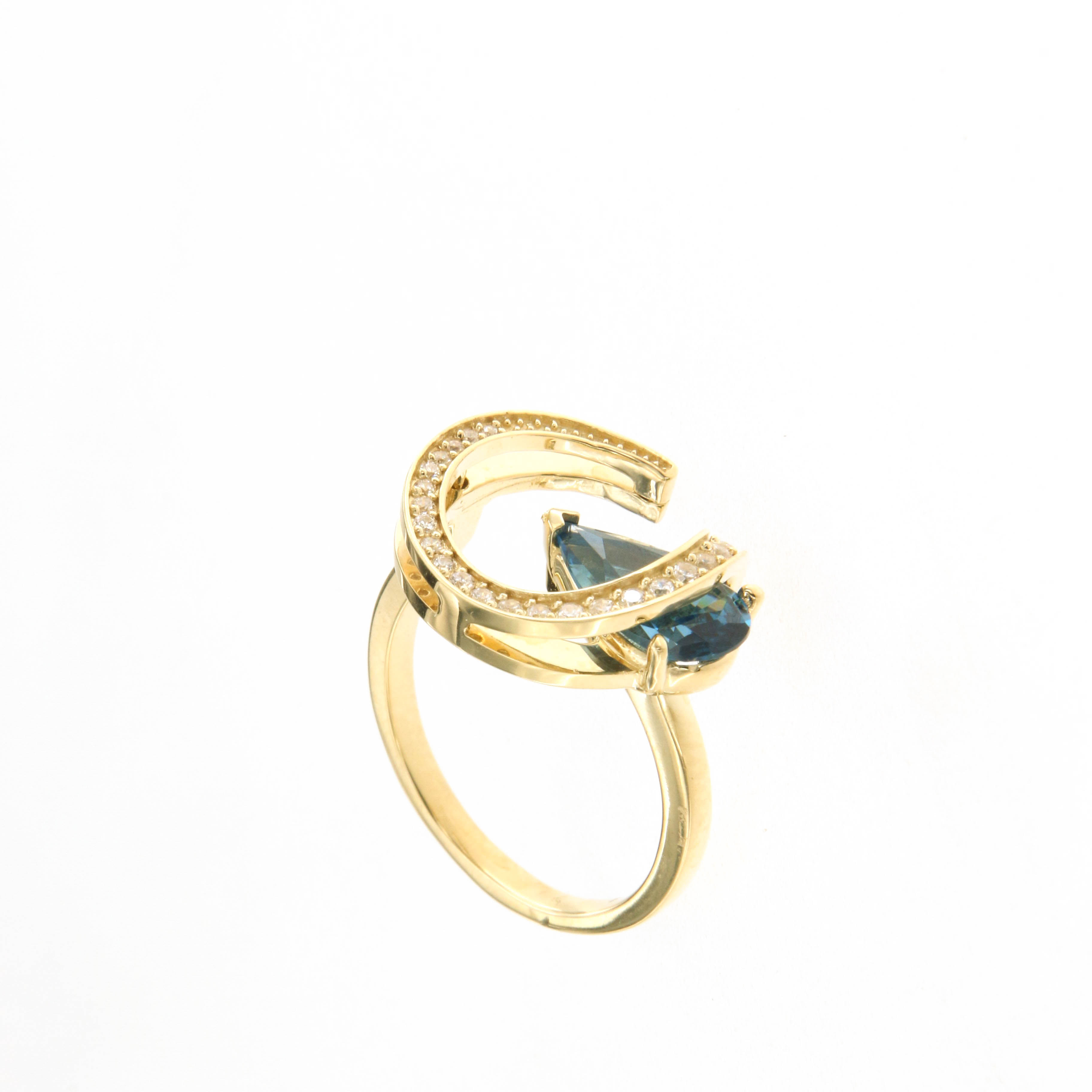 Пръстен от ” Jacklin hugasian ” в жълто злато с лондон топаз и циркони. Колекция ”ROBERTO BRAVO “. Произход Италия