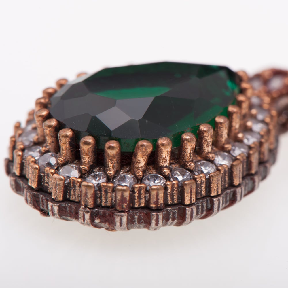 Висулка от "Jacklin hugasian" в розово оксидирано сребро с цирконии и тъмно зелен тюрмалин. Колекция "SULTAN".