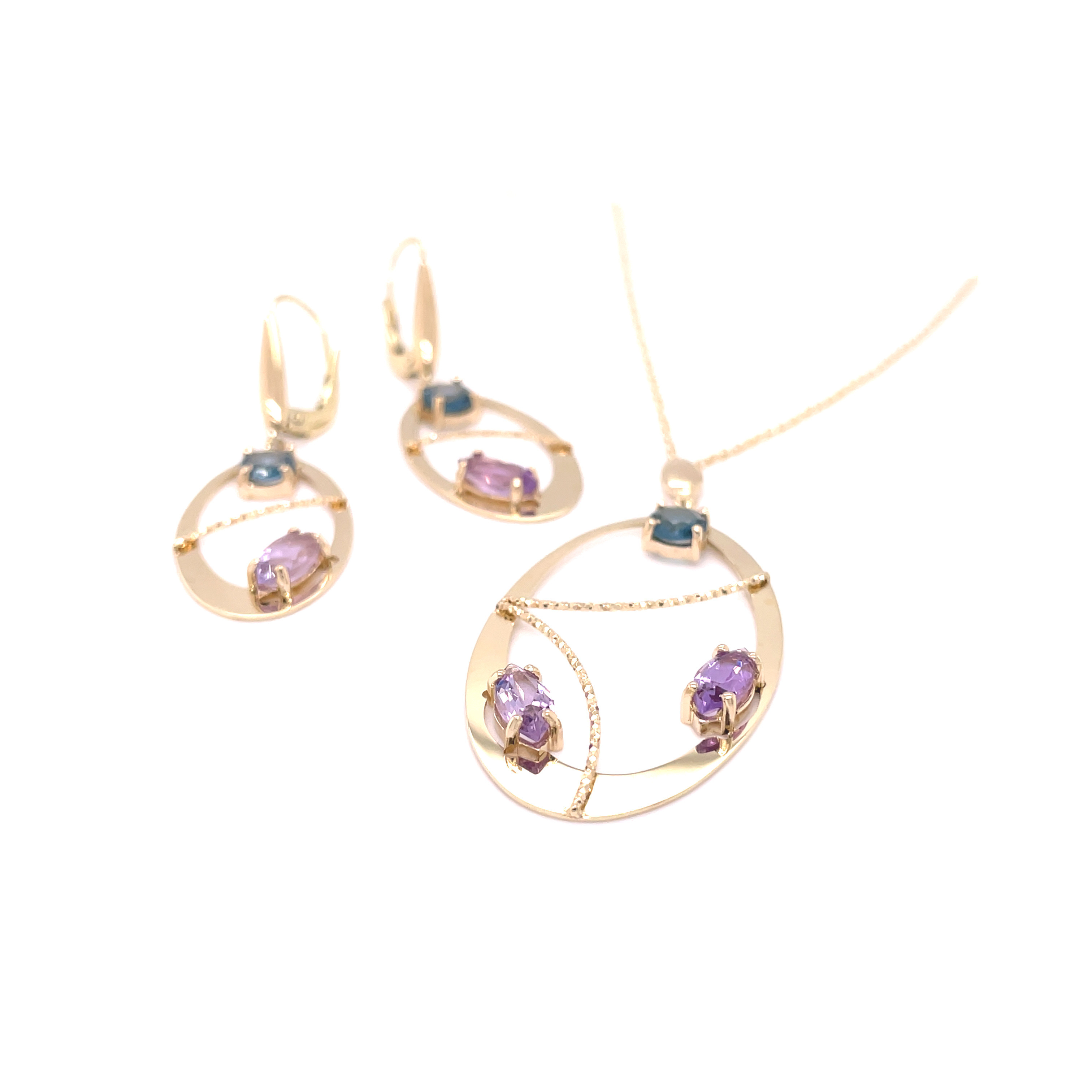 Колие от “ Jacklin hugasian “ в жълто злато с аметист и син топаз. Произход Италия.
