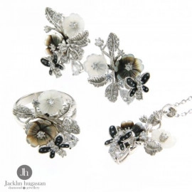 Комплект пръстен и колие от "Jacklin " в сребро със седеф, кралски седеф, емайл и циркон