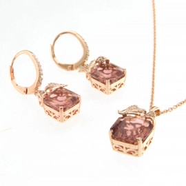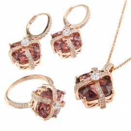 Комплект колие, обеци и пръстен от “Jacklin ” в розово сребро