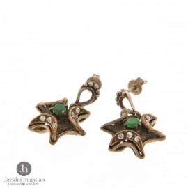 Обеци от "Jacklin " оксидирано сребро с позлата и изумруд и цирконии