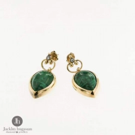 Обеци от "Jacklin " в жълто злато с диаманти и зелен сапфир